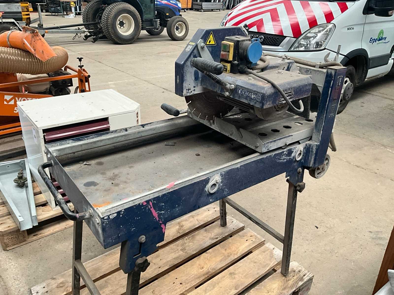Diamant zaagblad diameter 330 mm, demonteerbare poten, waterpomp, motorvermogen 2,2 kw, 220 volt Nee Merk: Carat Model: X-coup Product type: Tafel zaag Lengte: 120cm Breedte: 60cm Hoogte: 120cm