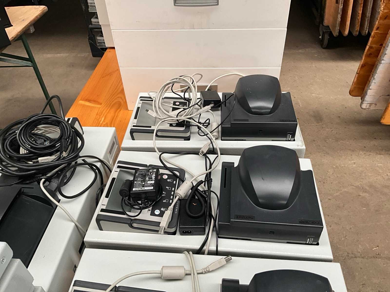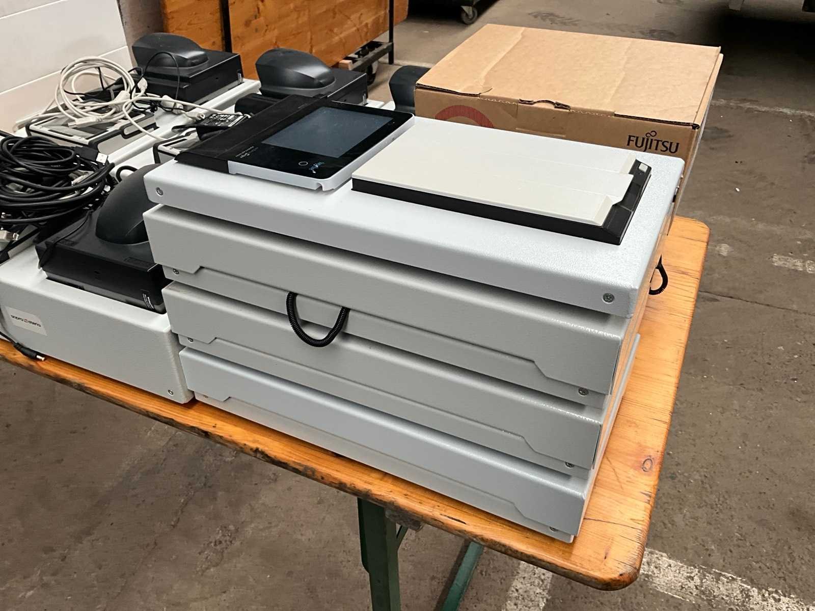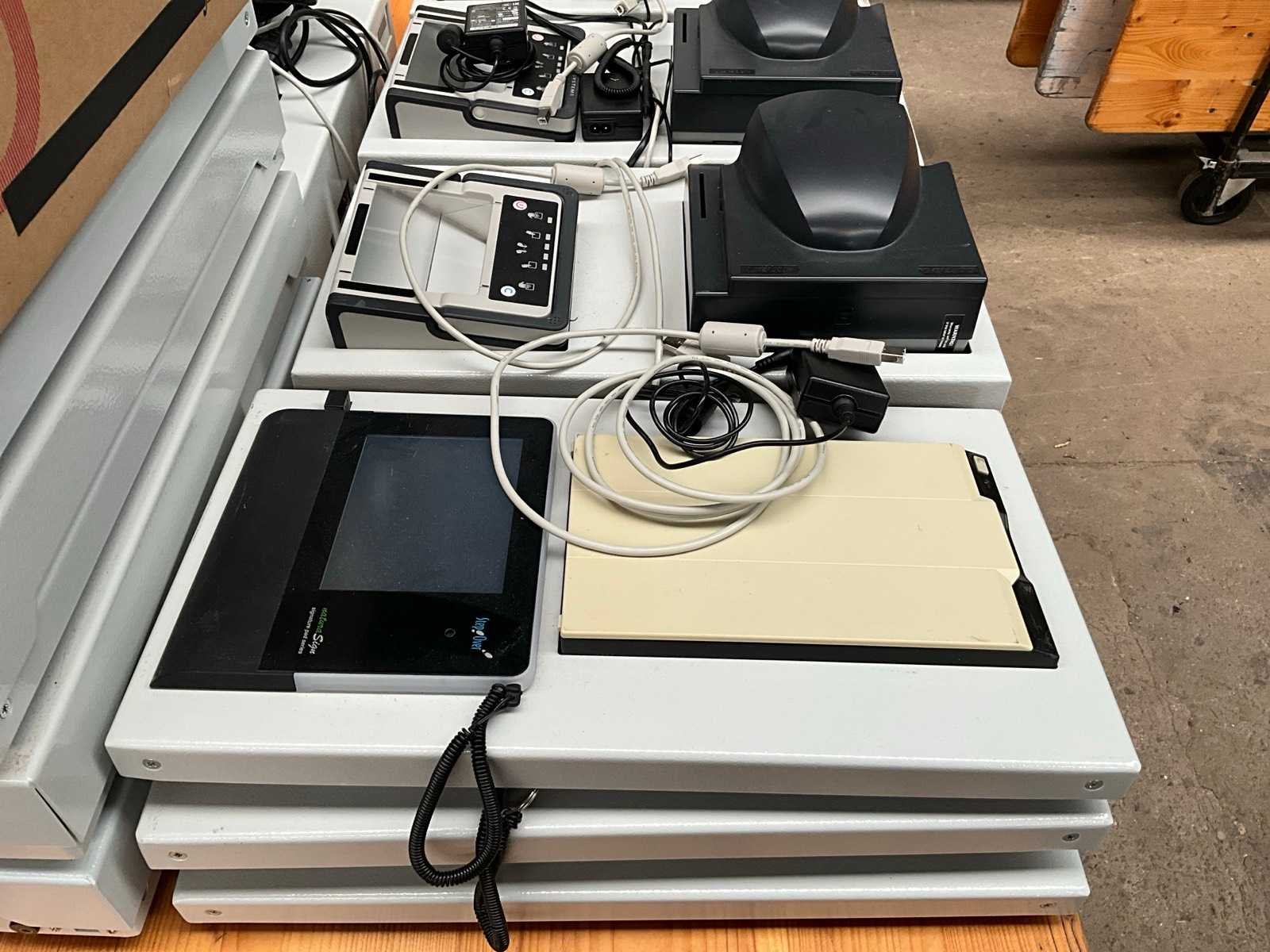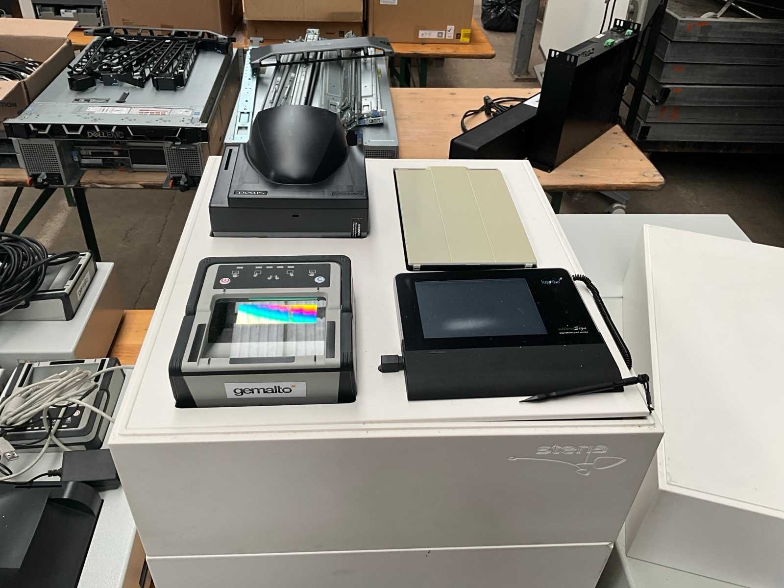 Bestaand uit fingerprint reader CS550J, Signpad Step over Natura sign, scannerFujitsu F165F, Combo lezer AHR, 3 sets compleet en 2 sets enkel scanner + signpad Nee Merk: Sopra Steria