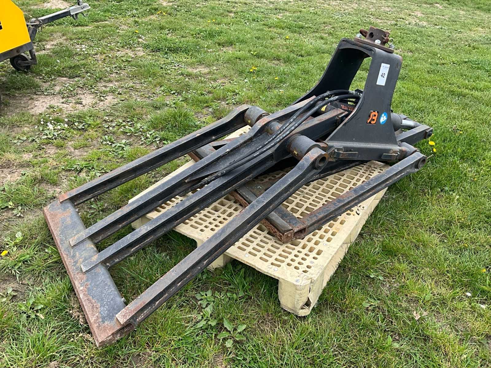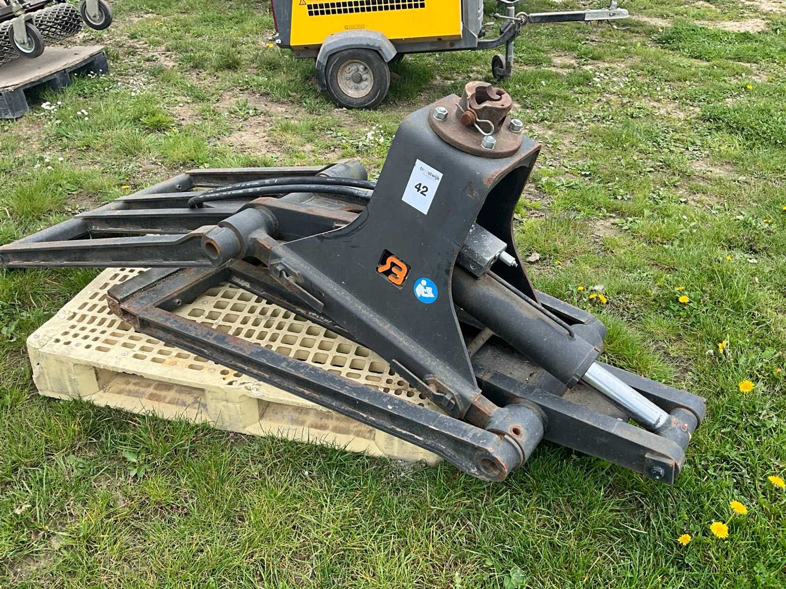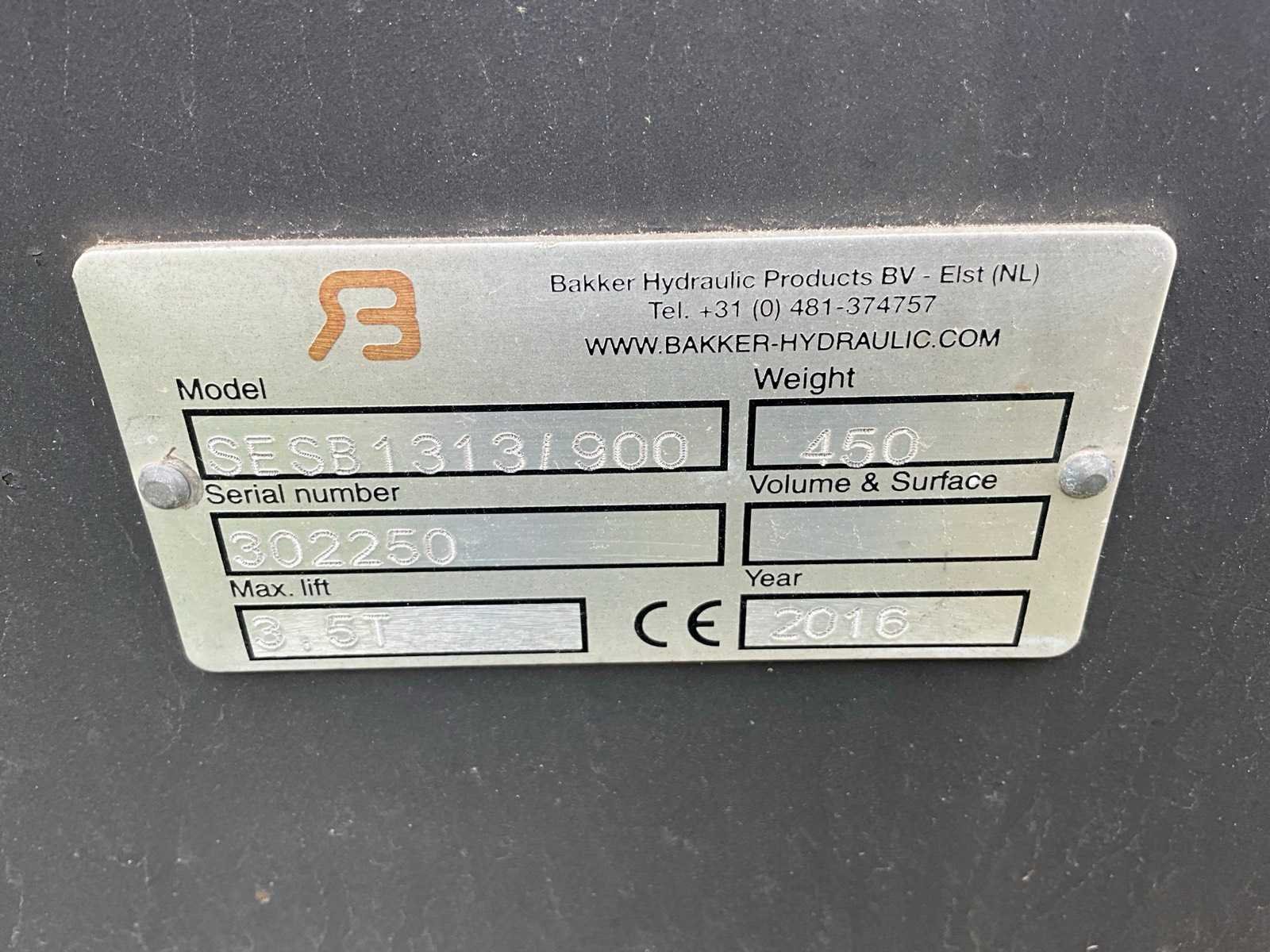 Voorzien van koppelpin, dubbele hydraulische slangen voor klemming Nee Merk: Bakker Hydraulic products Type: SESB1313/900 Bouwjaar: 2016 Serienummer: 302250 Eigen gewicht: 450kg Totale afmeting L: 1000mm Totale afmeting Breedte: 1000mm Totale afmeting Hoogte: 1700mm