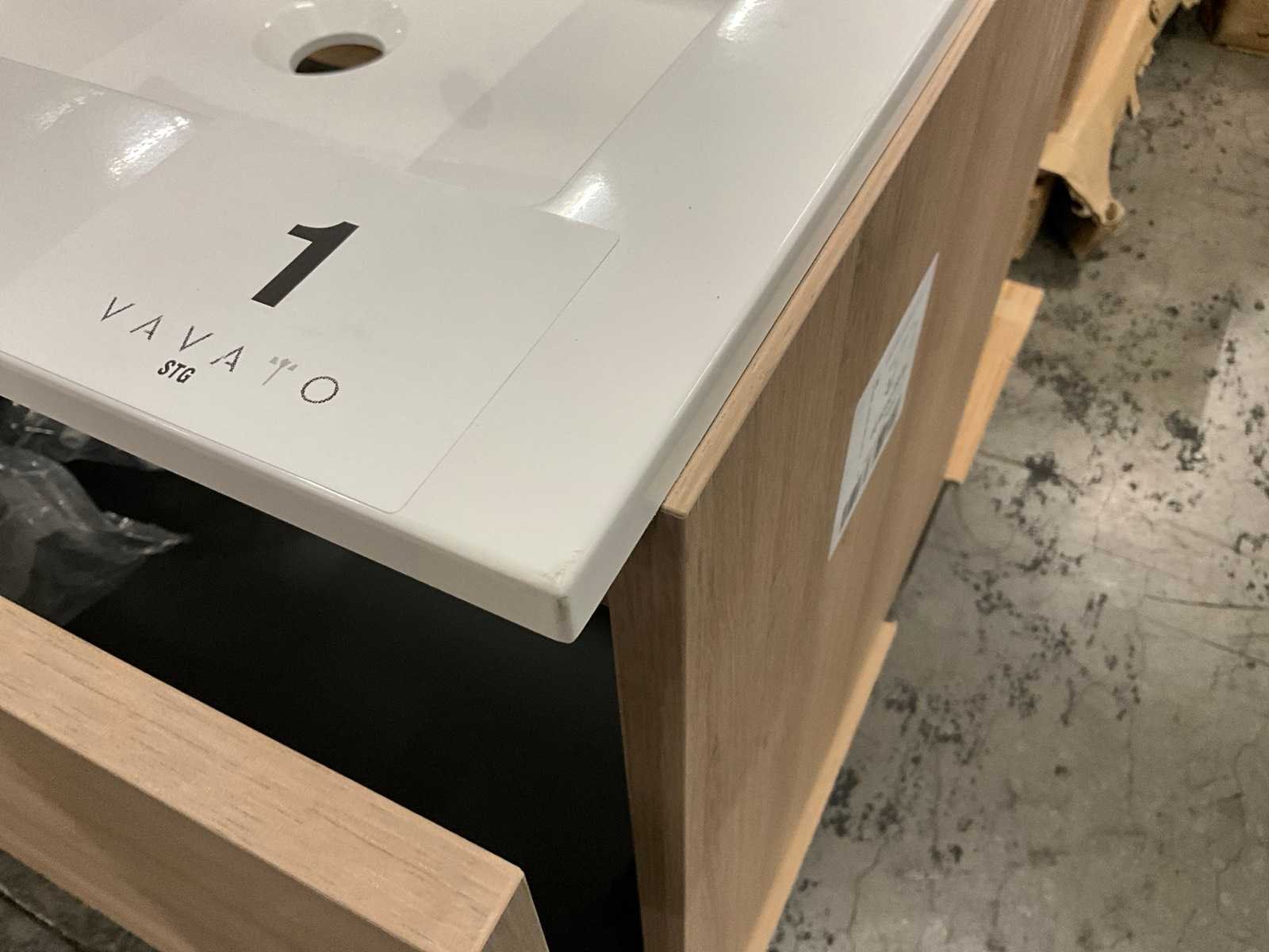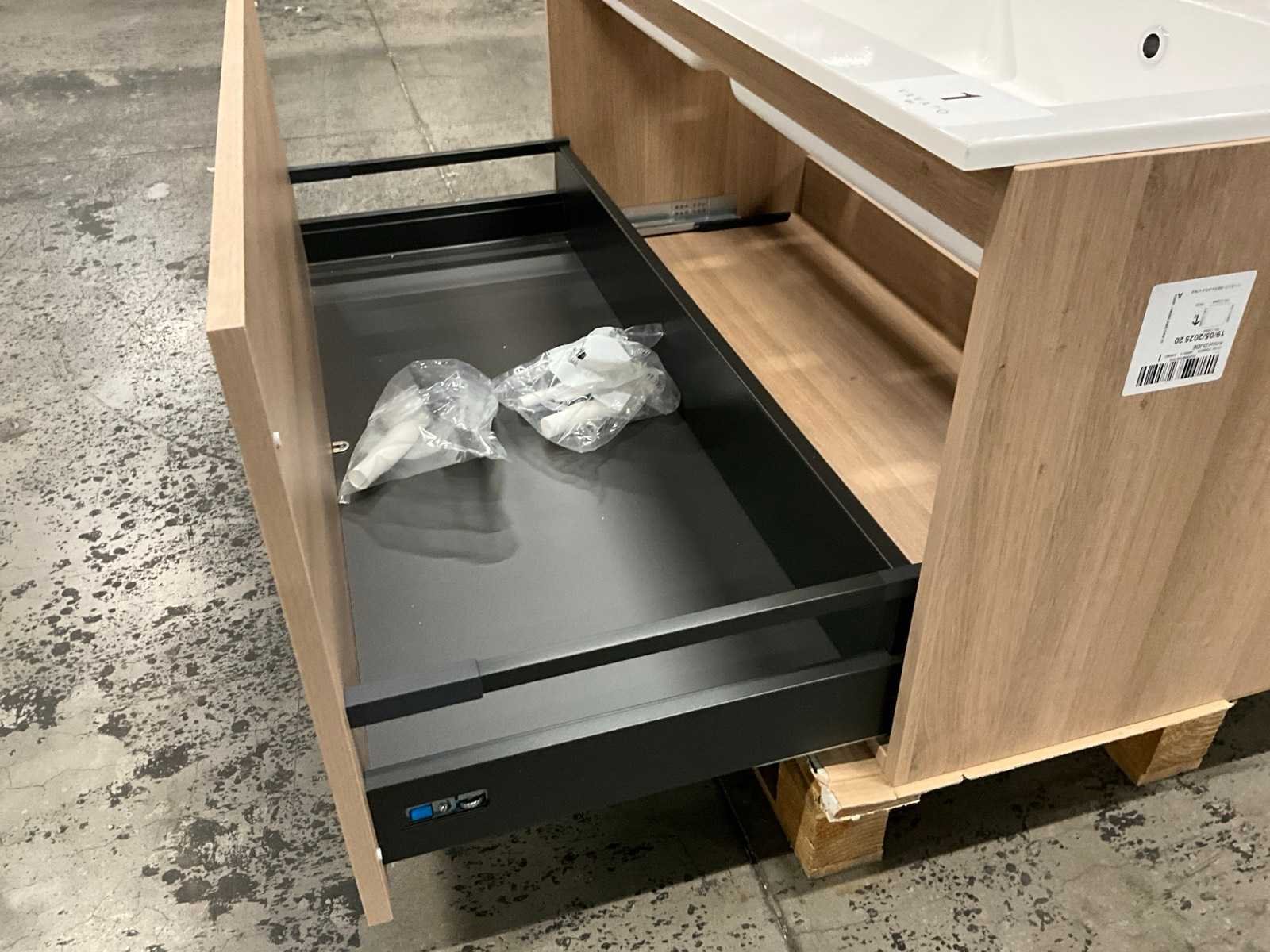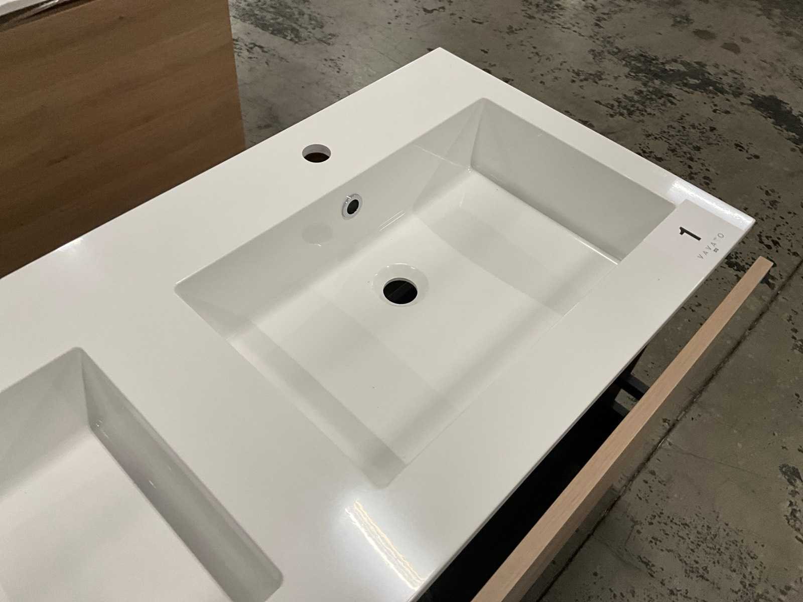 Onderkast voorzien van 1 lade, compleet met dubbele composiet wastafel. No Merk: Kivu Lengte: 120cm Breedte: 50cm Hoogte: 54cm