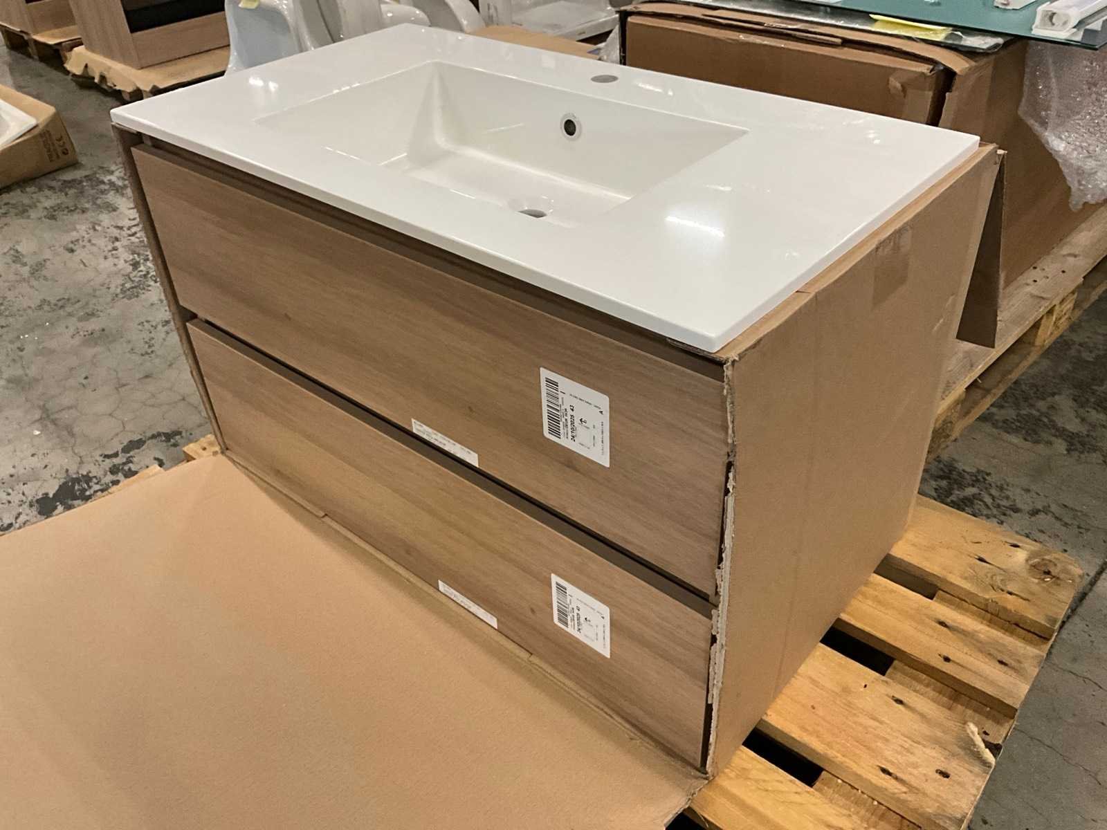 Onderkast voorzien van 2 laden, compleet met composiet wastafel en spiegel 90 x 70cm Nee Merk: Kivu Lengte: 90cm Breedte: 50cm Hoogte: 54cm