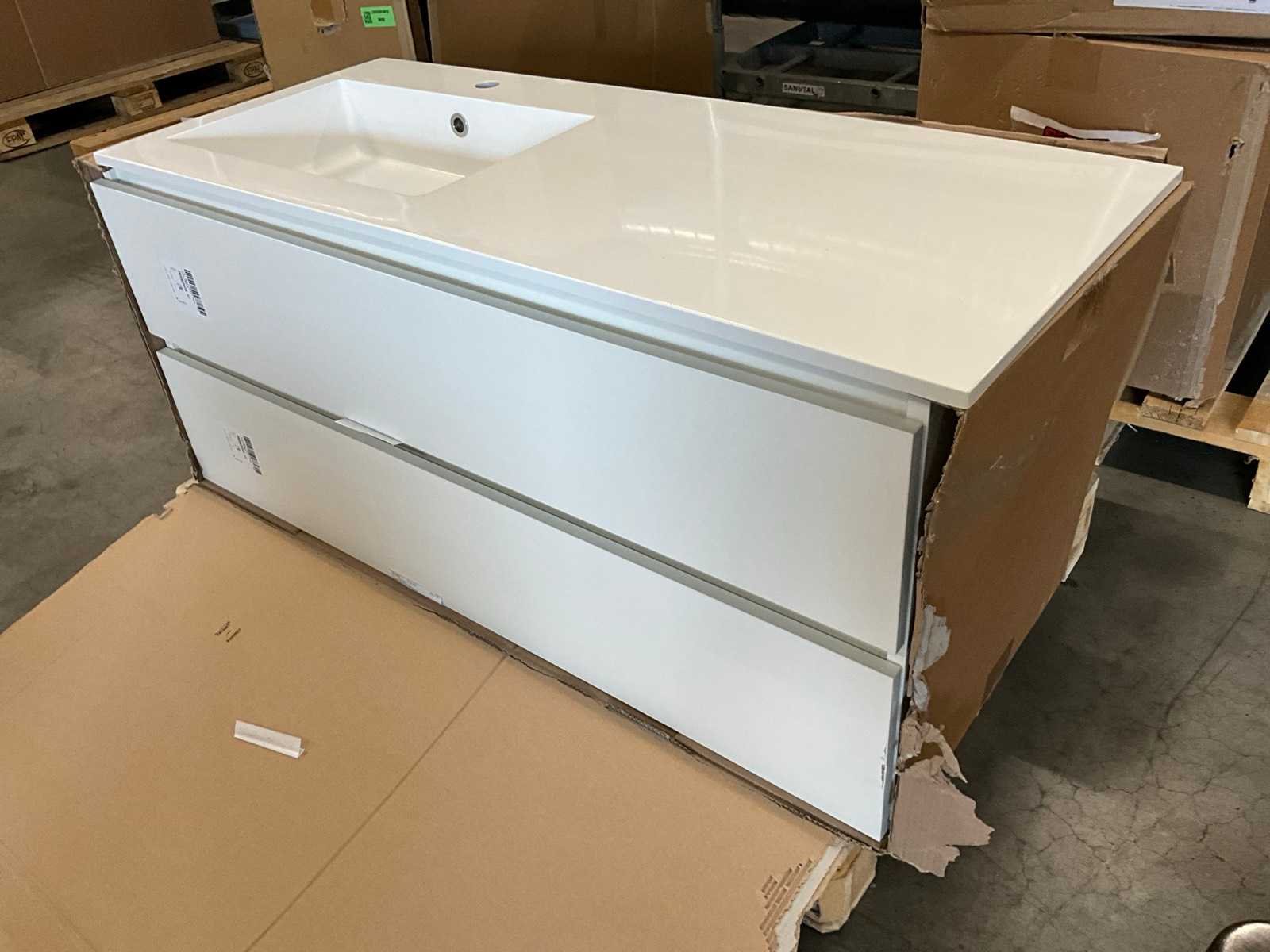 Onderkast voorzien van 2 laden, compleet met composiet wastafel Nee Merk: Kivu Lengte: 120cm Breedte: 50cm Hoogte: 54cm