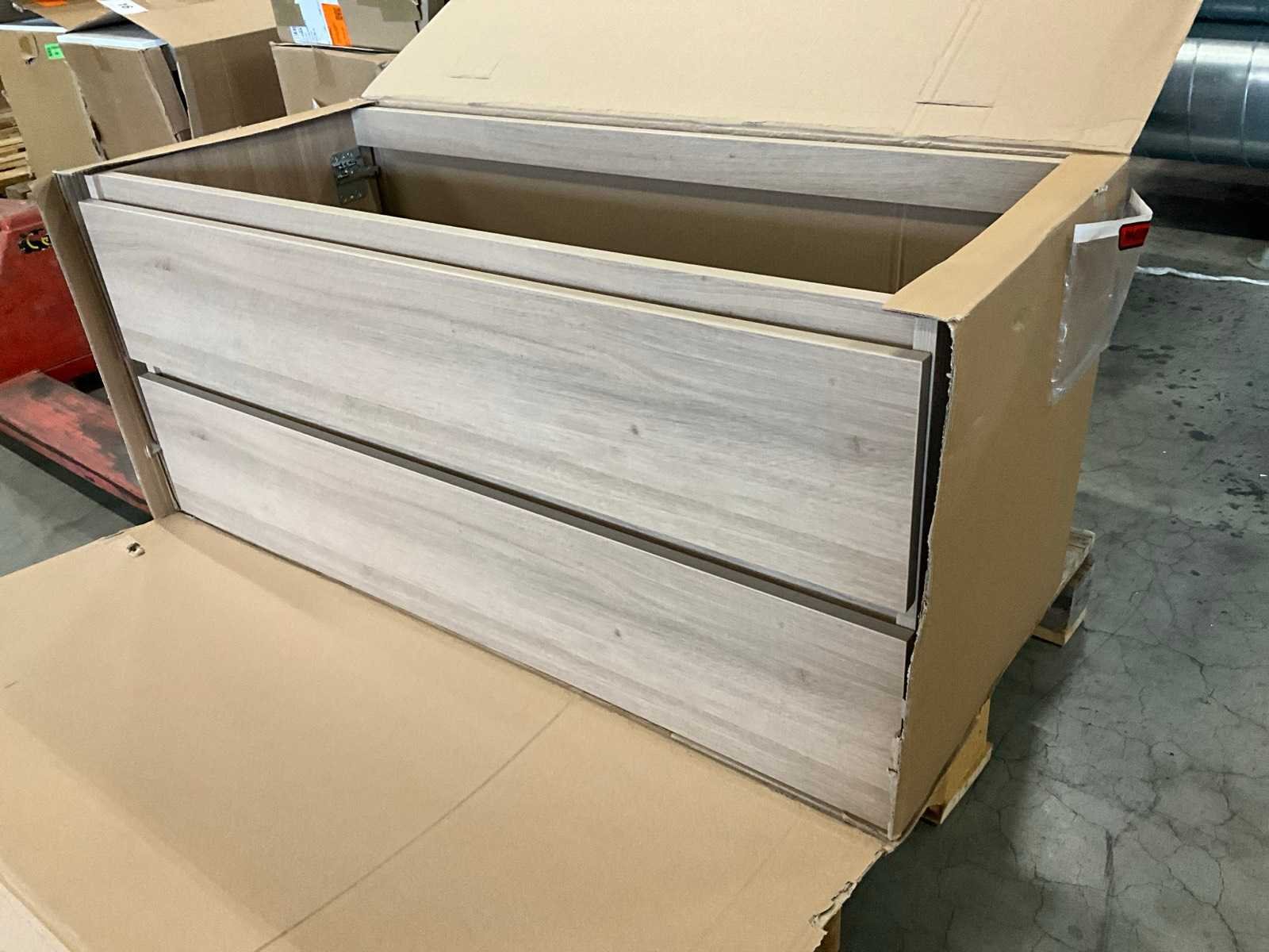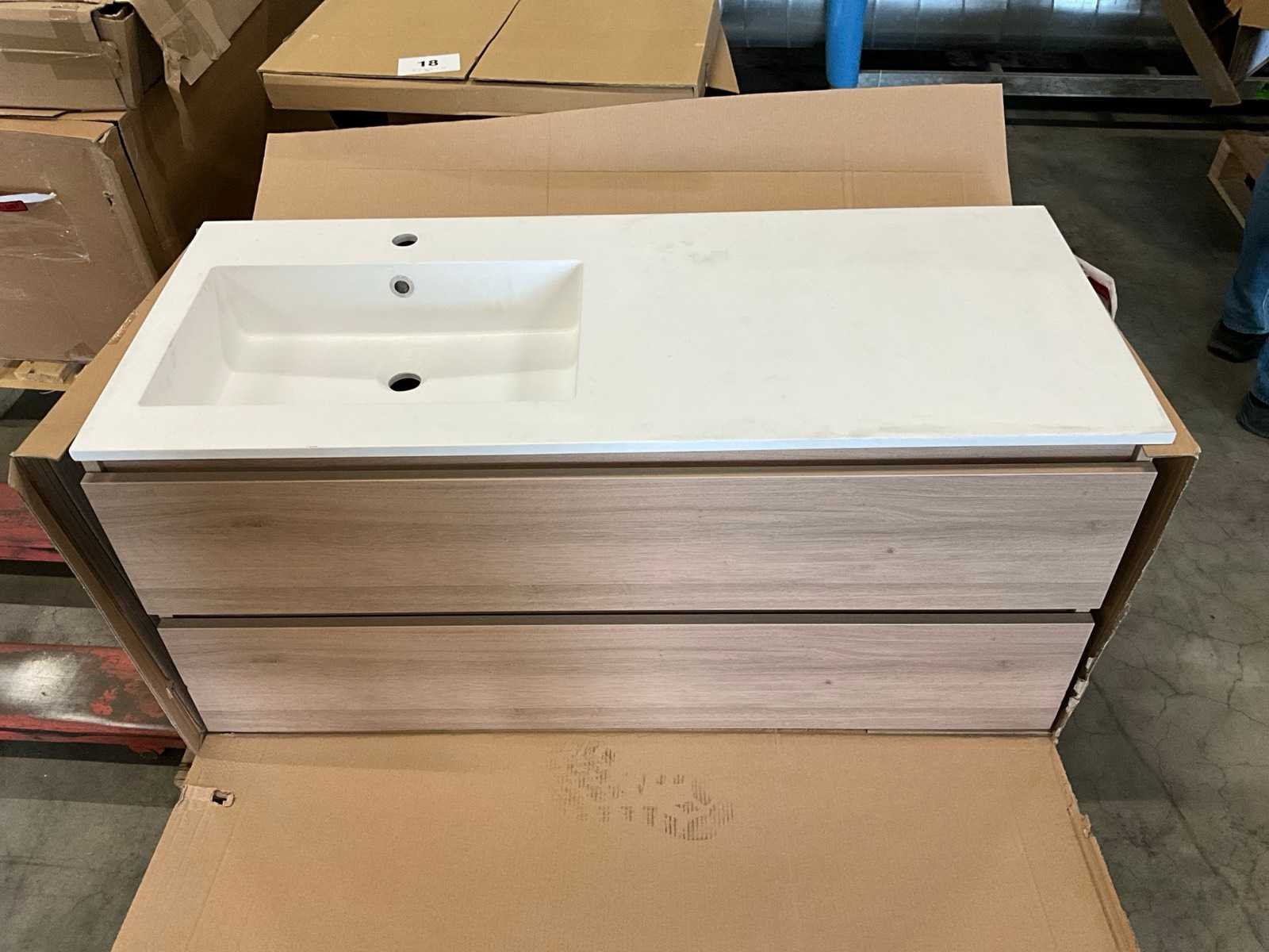 Onderkast voorzien van 2 laden, compleet met composiet wastafel No Merk: Kivu Lengte: 120cm Breedte: 50cm Hoogte: 54cm