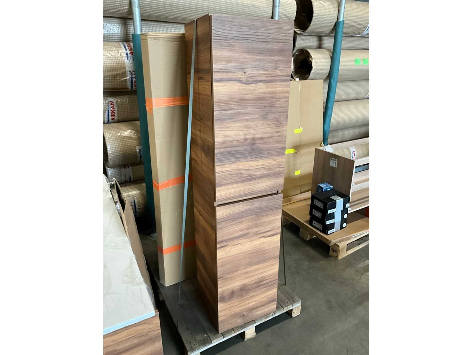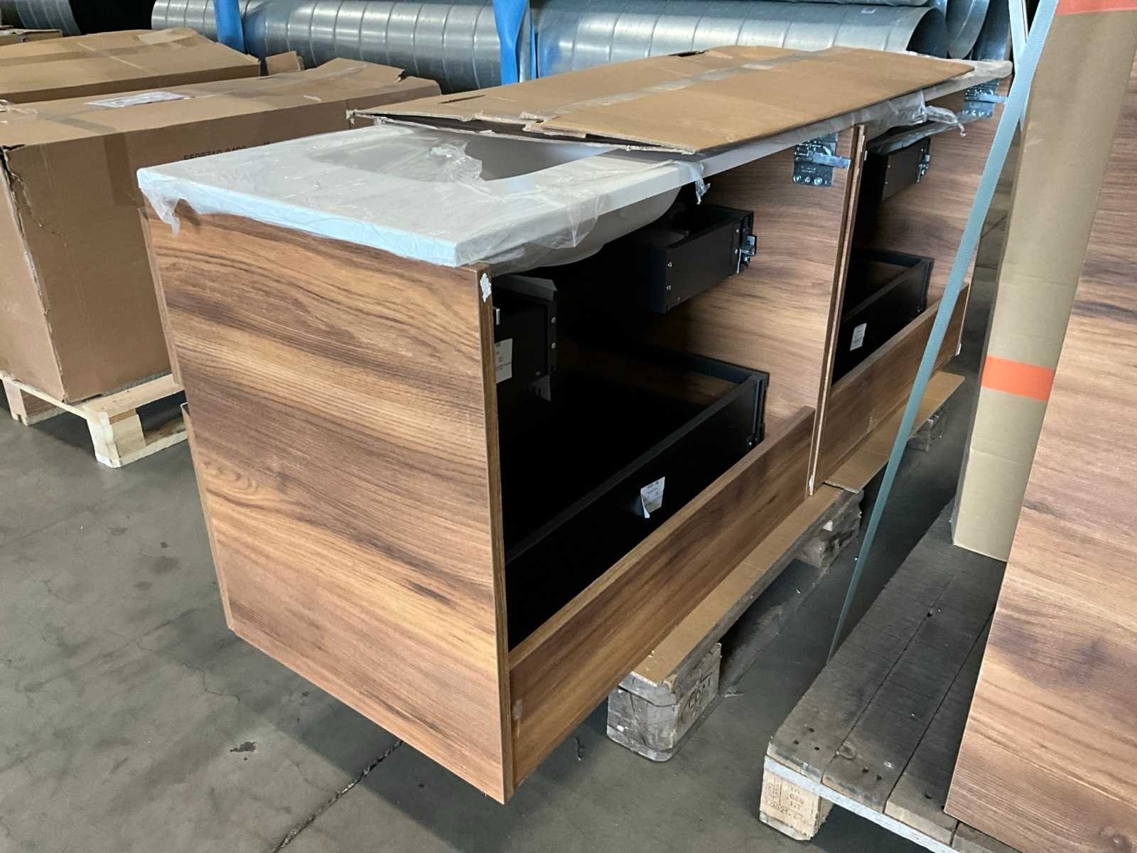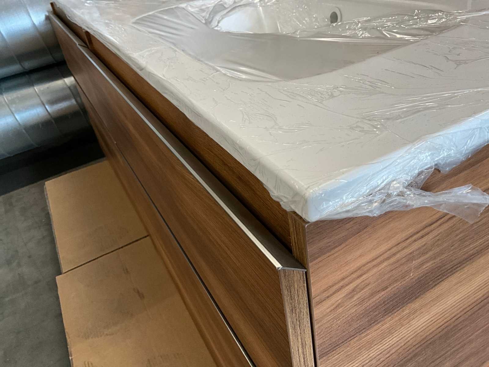 Onderkast voorzien van 4 laden, compleet met composiet dubbele wastafel en kolomkast voorzien van 2 deuren 40 x 36 x 166cm en spiegel 160 x 70cm No Merk: Kivu Lengte: 160cm Breedte: 50cm Hoogte: 63cm