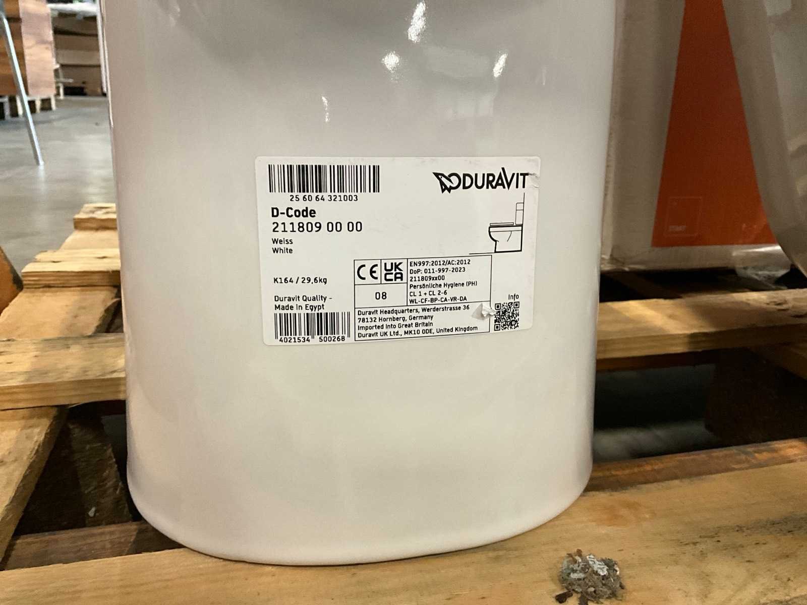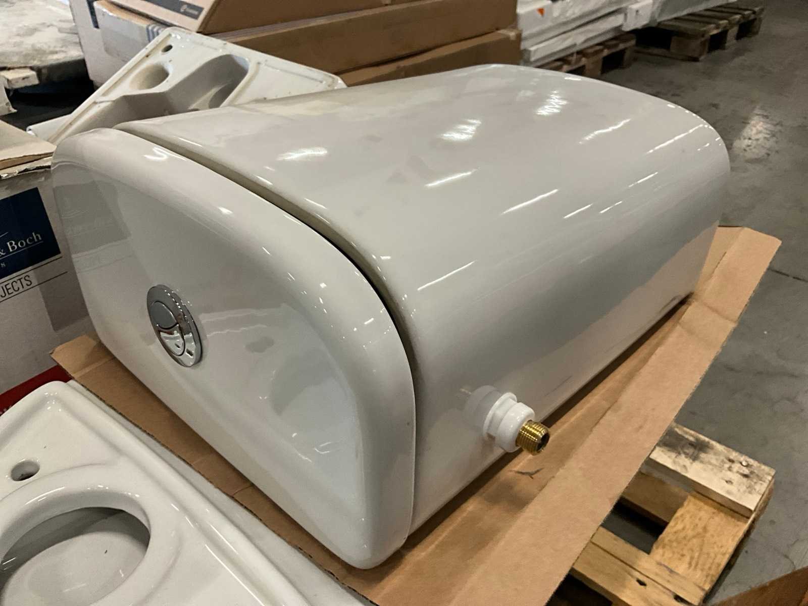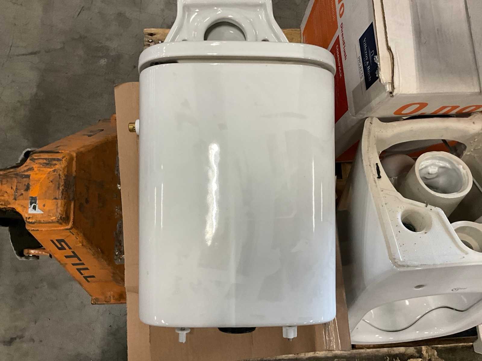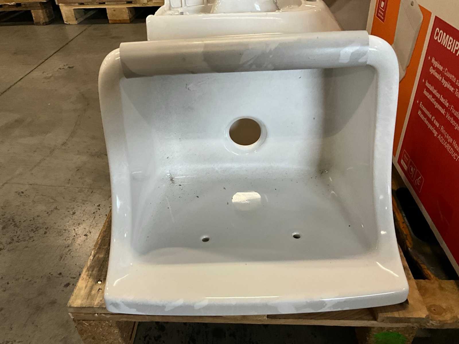 No 1e: Staand toilet Duravit 211809 00 00 2e: Porseleinen jachtbak 3e: Hangtoilet Ideal Standard 4e: Porseleinen uitgietbak 5e: Staand toilet Villeroy & Boch O.Novo 6e: 20x Finsuola Acryl clean