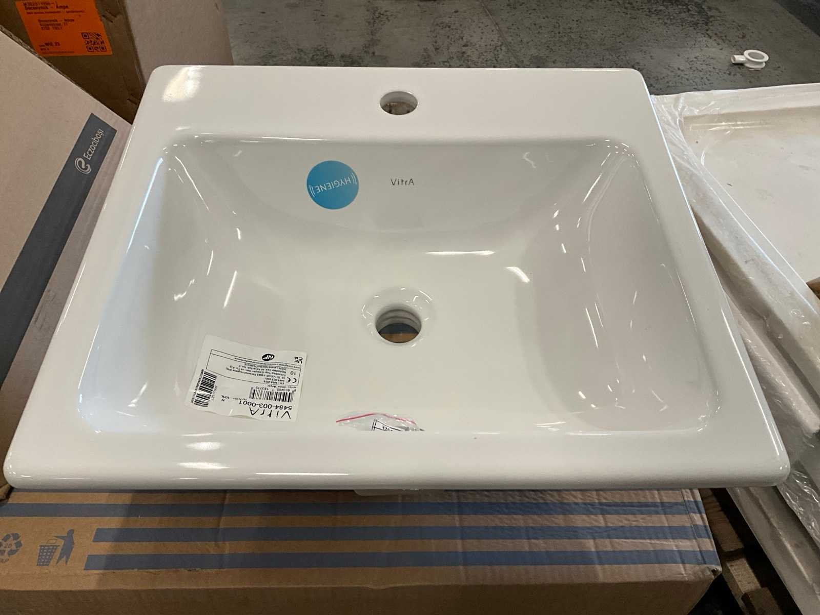 No 1e: Lavabo Vitra 5464B003-0001 2e: Lavabo Vitra 5464B003-0001 3e: Lavabo Vitra 5464B003-0001 4e: Composiet handenwasser 5e: Hangtoilet Galvano 6e: Hangtoilet inbouwlichaam Ideal Standard 7e: Spoeltafel Franke Sirius