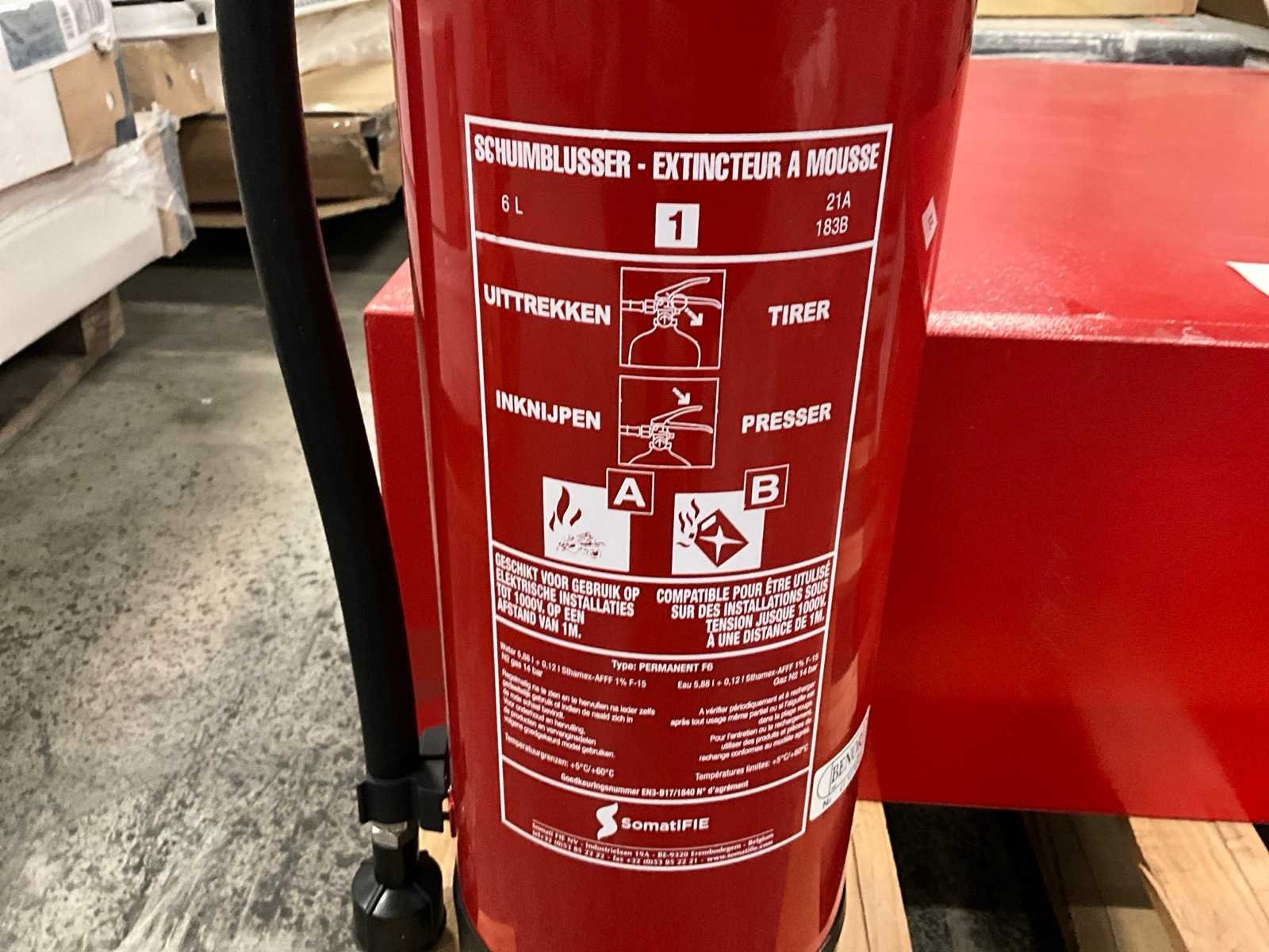 Bestaande uit haspelkast Dimex 90 x 100 x 27cm en schuimblusser Somatifie 6L No