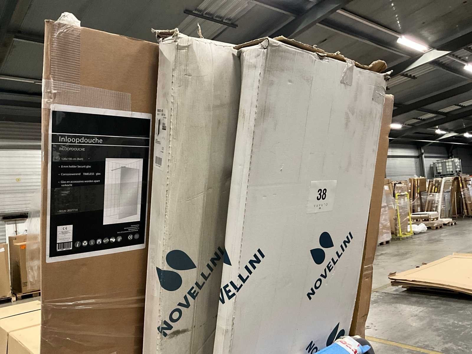 Waaronder 2x Novellini, 1x Galvano, 1 doucheglas 86 x 200cm. Metalen bok niet inbegrepen. Nee