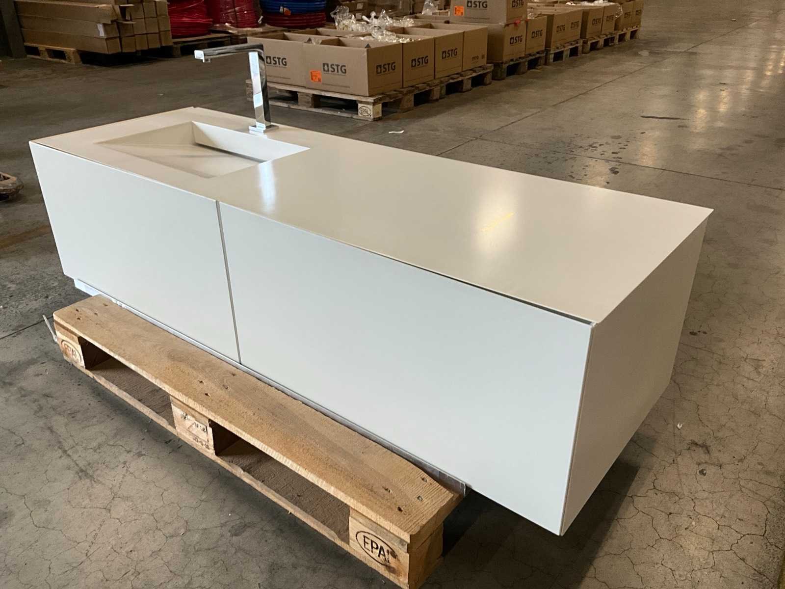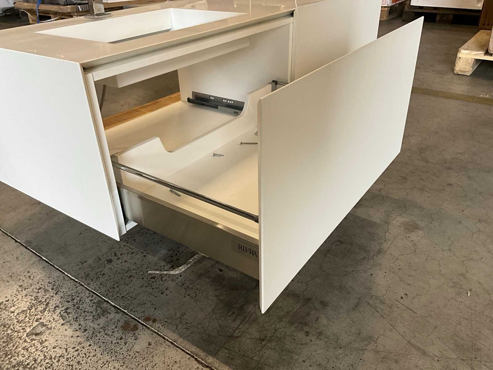 Toonzaalmodel. Compleet met spiegel 160 x 60cm No Merk: Rifra Lengte: 160cm Breedte: 55cm Hoogte: 40cm