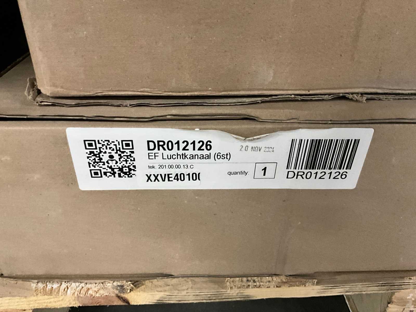 Waaronder luchtkanalen, verticale bochten, dakdoorvoeren, liggende in 20 dozen op 2 pallets No