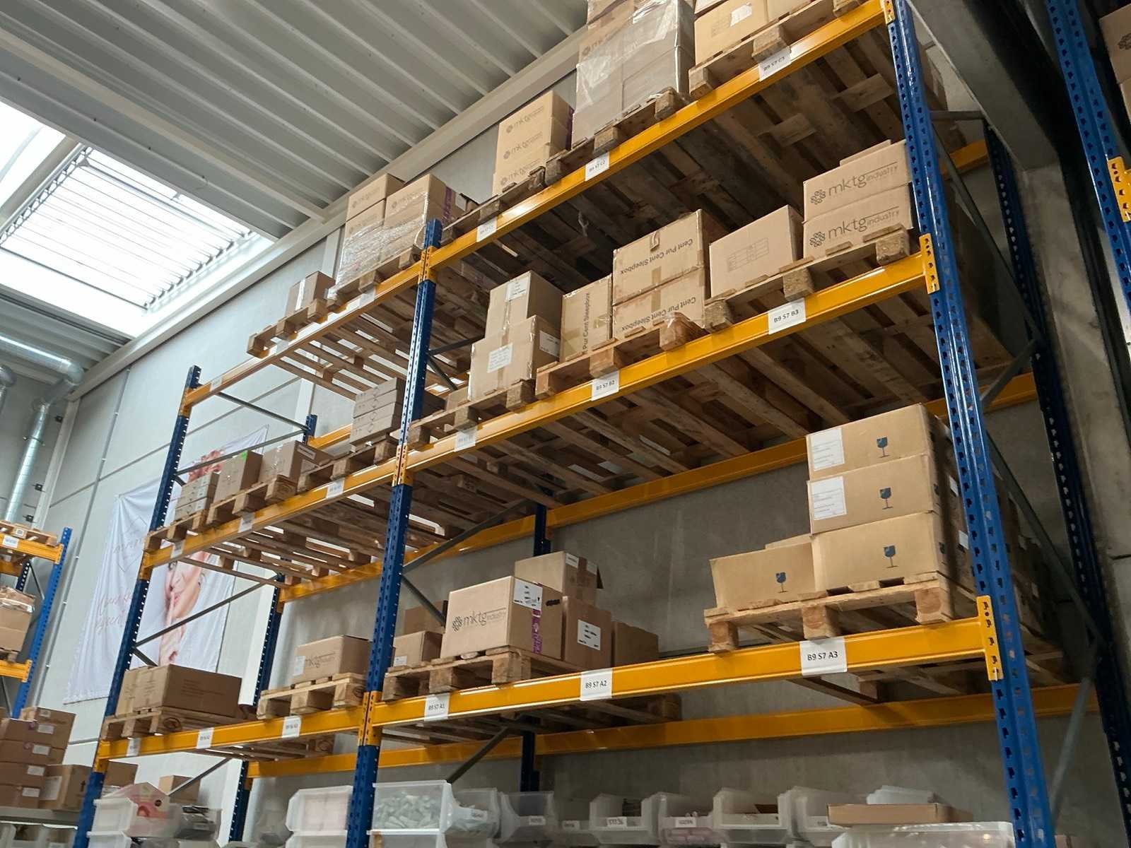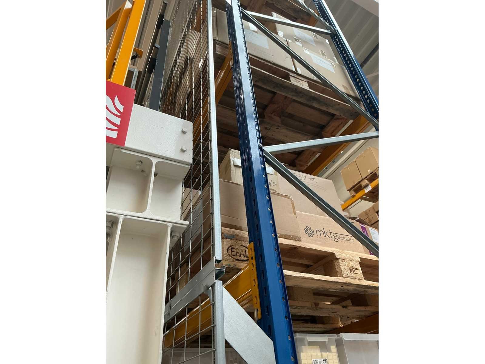 Bestaande uit 10 staanders 110xH550cm, 12 liggers 360xH12cm, 30 liggers 270xH11cm en 10 pootbeschermers, inclusief 1 achterwand Nee Merk: Jungheinrich Type: MPB Bouwjaar: 2022 Demontabel: true