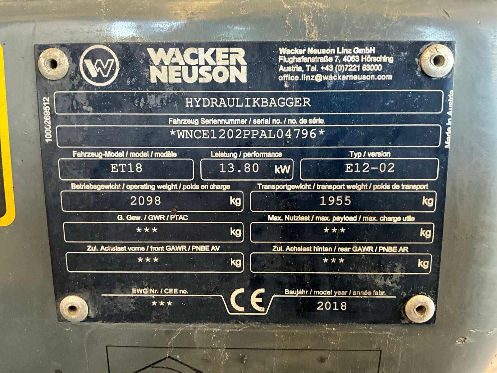 2018 wacker neuson et18 minigraafmachine