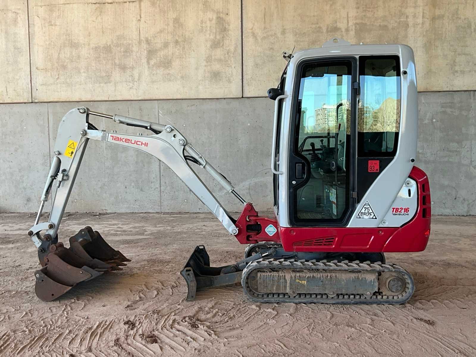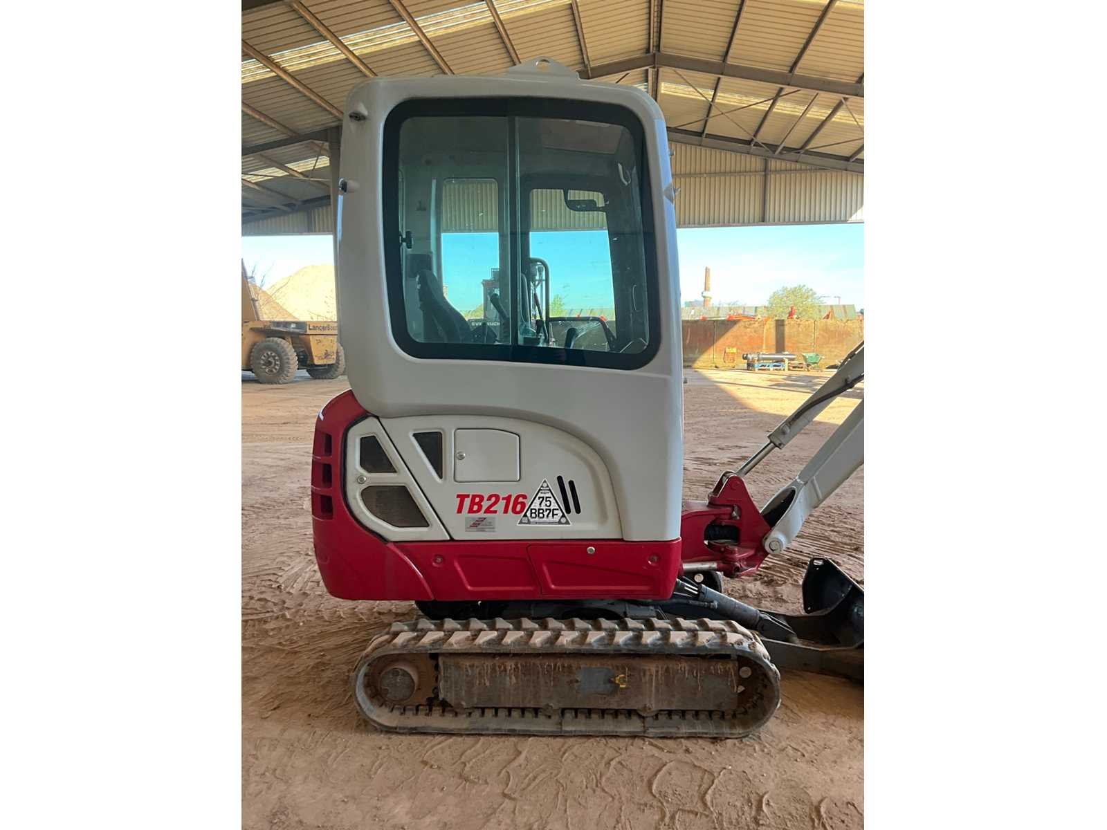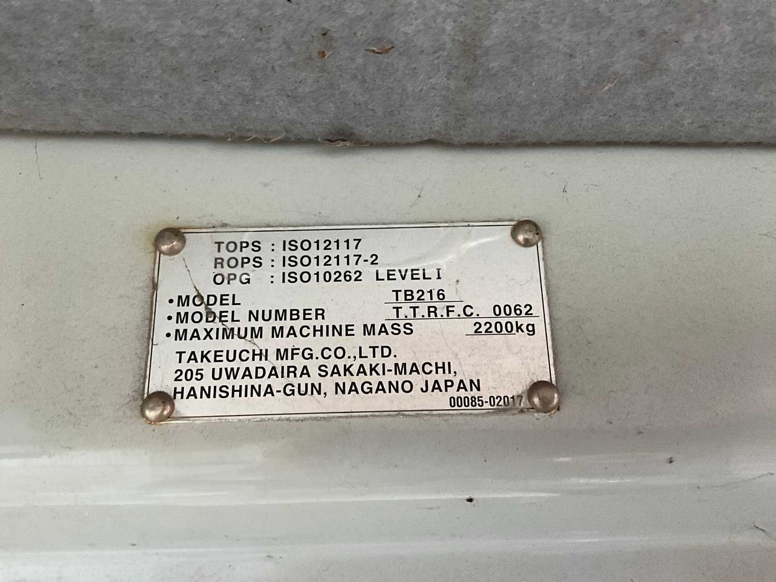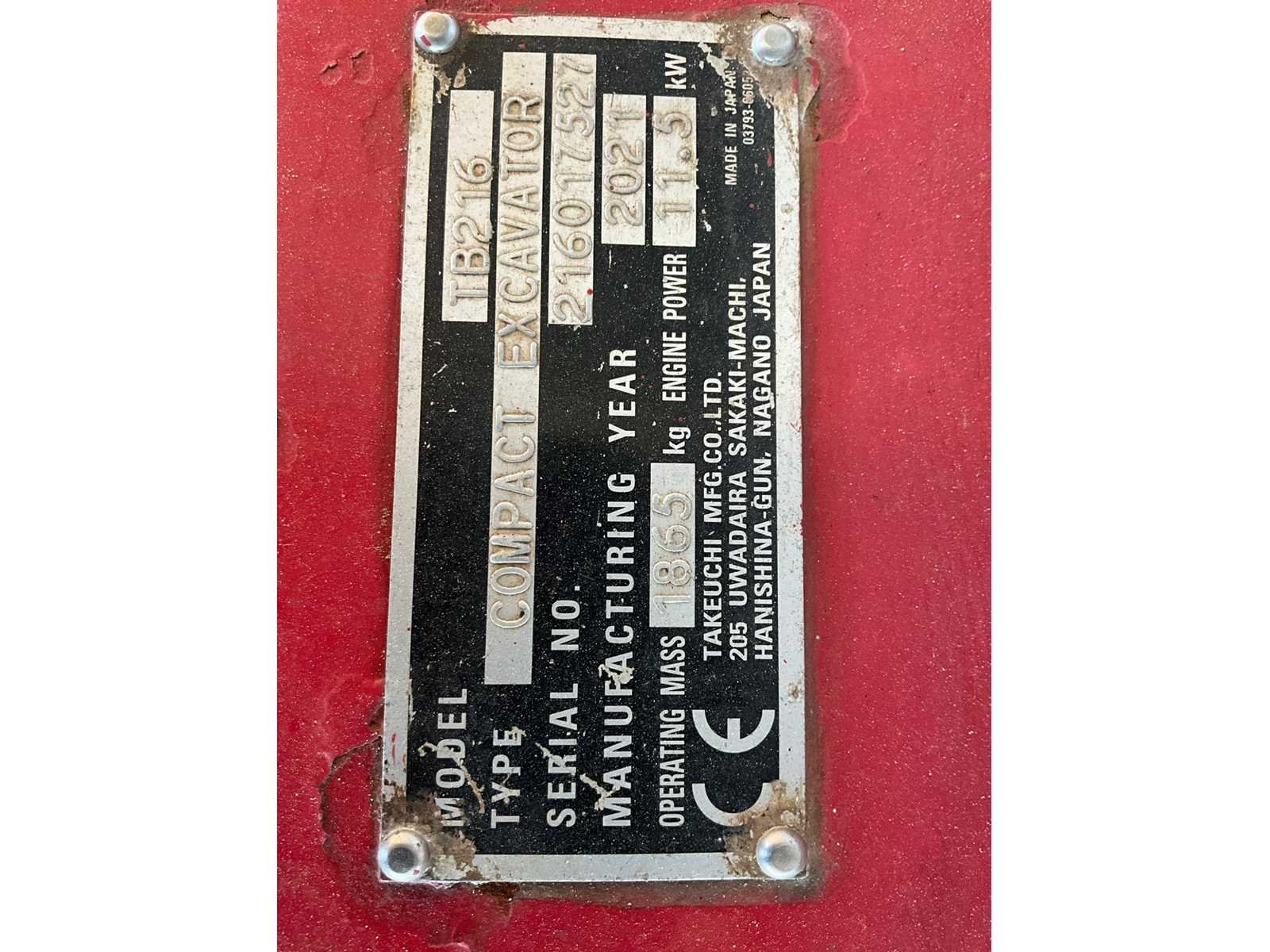 Inclusief 3 graafbakken, breedtes 28, 60 en 98cm No Merk: Takeuchi Type: TB216 Bouwjaar: 2021 Serienummer: 216017527 Rups breedte: 230mm Afgelezen urenstand: 910