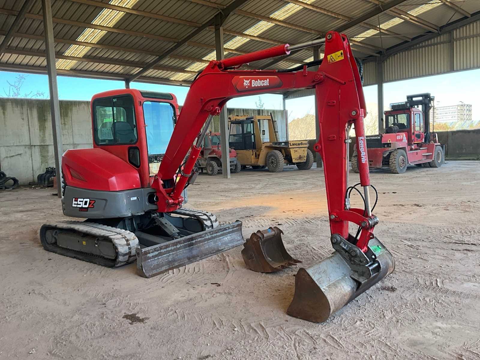 Inclusief 2 graafbakken, 150cm en 45cm No Merk: Bobcat Type: E50Z Bouwjaar: 2022 Serienummer: B4HT11468 Met graafbak: true Rups breedte: 350mm Cabine: true Afgelezen urenstand: 1230 Eigen gewicht: 4739kg