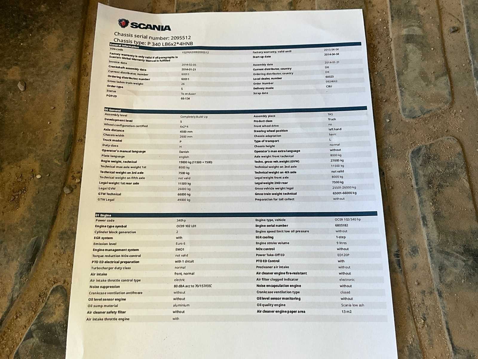 Geen documenten aanwezig No Merk: Scania Type: P340 Bouwjaar: 2014 Chassisnummer VIN: YS2P6X20002095512 Type transmissie: Automatisch Aantal sleutels: 2 Emissieklasse: euro 6 Afgelezen kilometerstand: 517871km