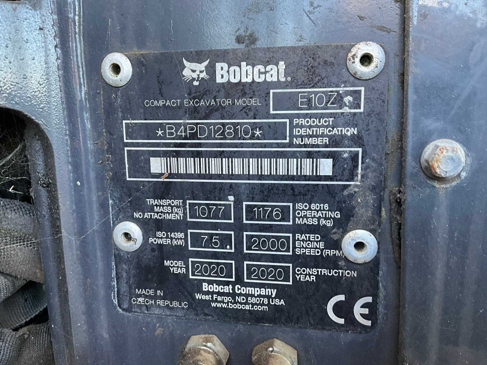 Inclusief 2 graafbakken, breedtes 20cm en 80cm No Merk: Bobcat Type: E10Z Bouwjaar: 2020 Serienummer: B4PD12810 Afgelezen urenstand: 862