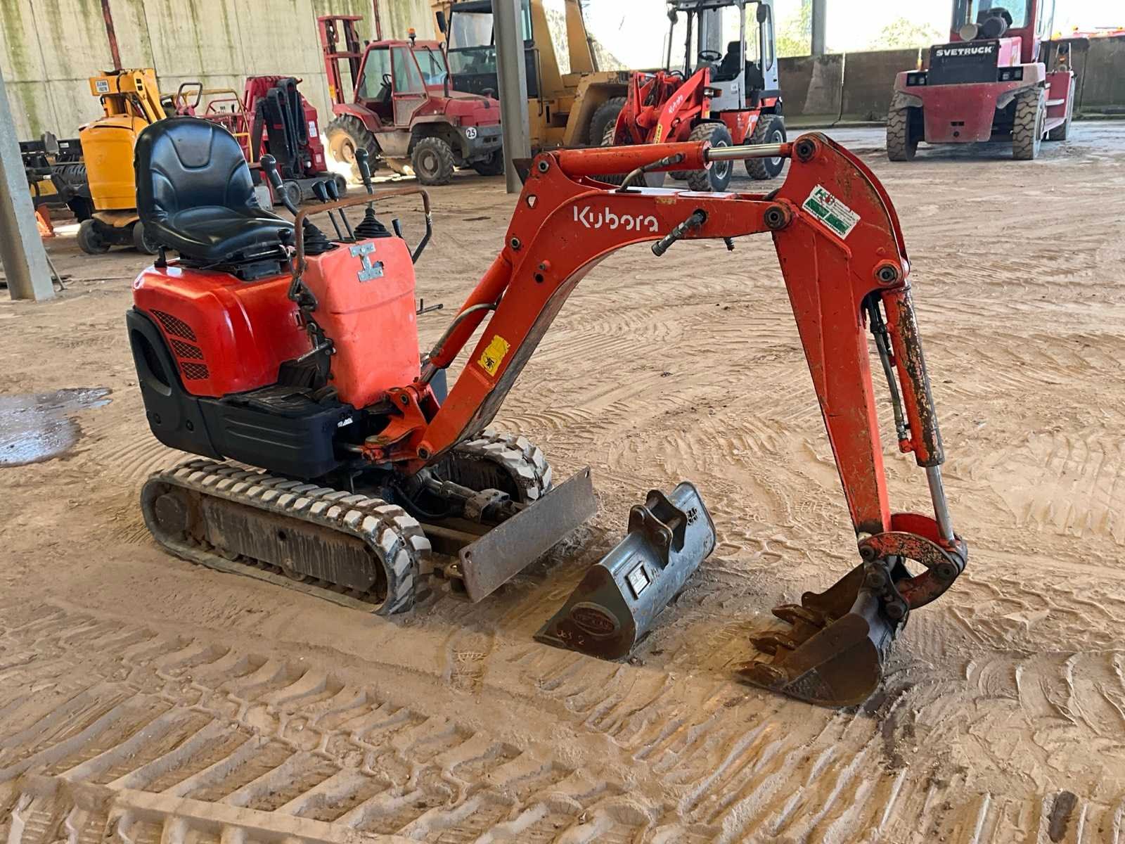Inclusief 2 graafbakken, breedtes 60 en 40cm. Bouwjaar onbekend. No Merk: Kubota Type: K008-3 Brandstof: Diesel Afgelezen urenstand: 941