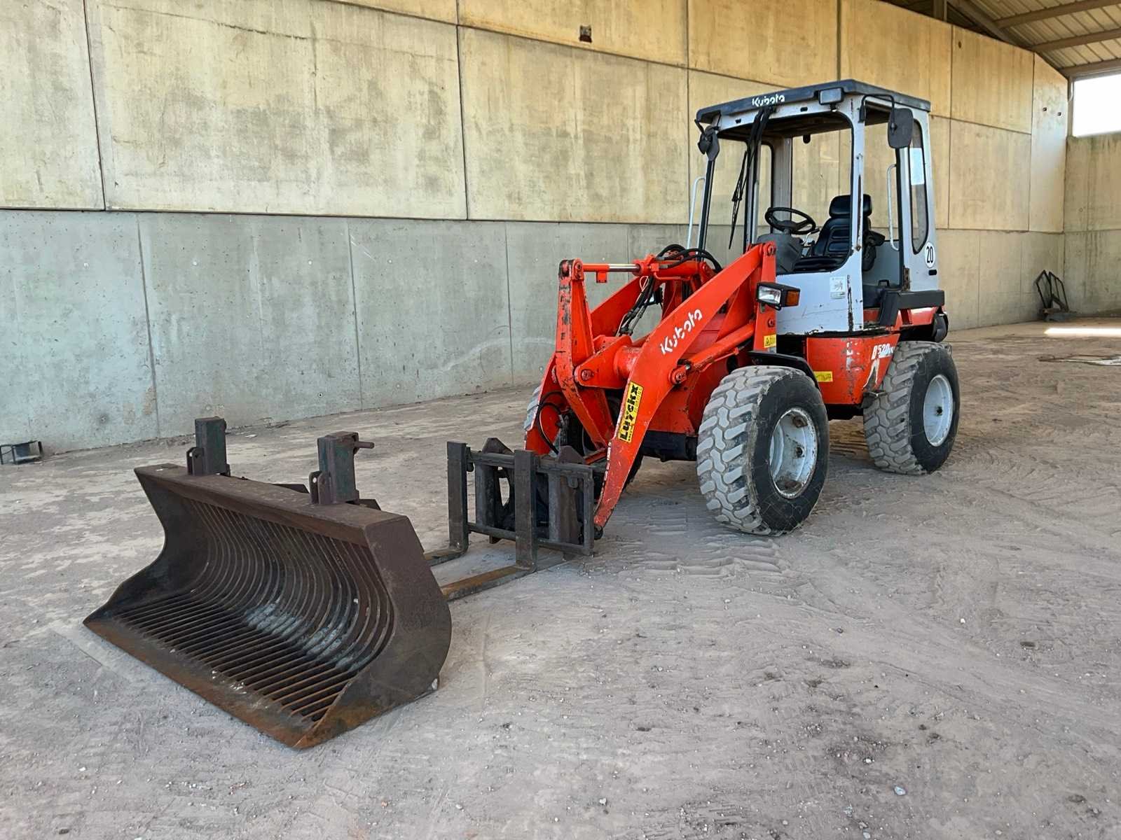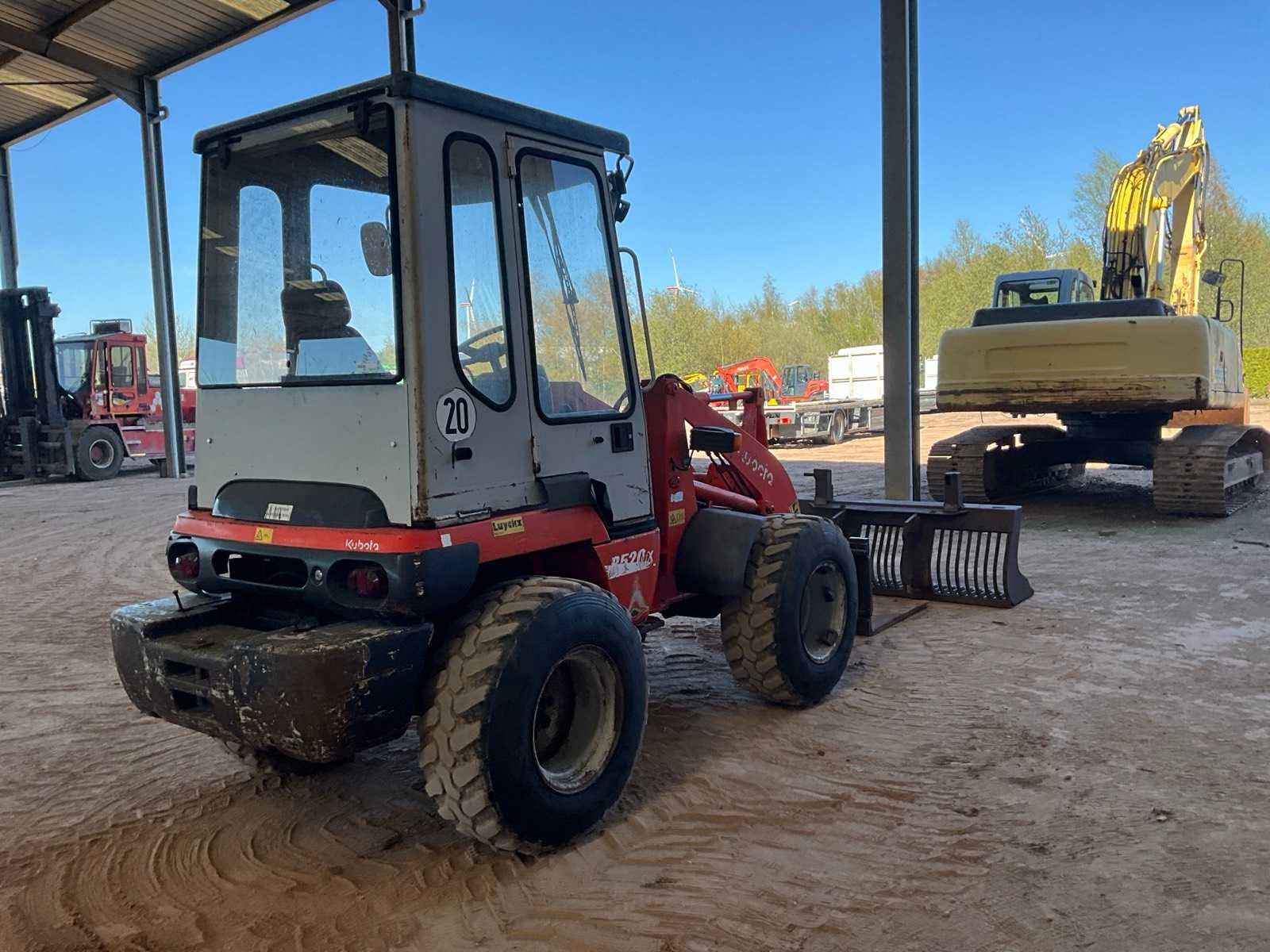 Compleet met graafbak 185cm en lepels. Linkerdeur en voorruit ontbreken. Bouwjaar onbekend. No Merk: Kubota Type: R520NH Bouwjaar: 2004 Serienummer: WKFR281002Z001014 Afgelezen urenstand: 3561