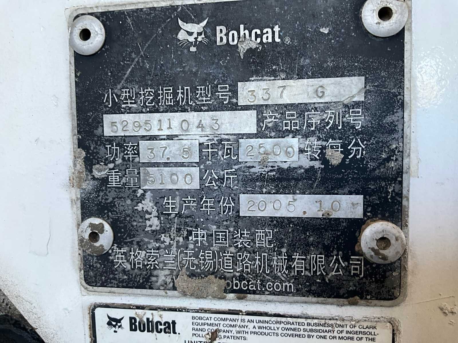 No Merk: Bobcat Type: 337 Bouwjaar: 2005 Serienummer: 529511043 Met graafbak: true Graafbak afm. b: 750mm Cabine: true Afgelezen urenstand: 3303