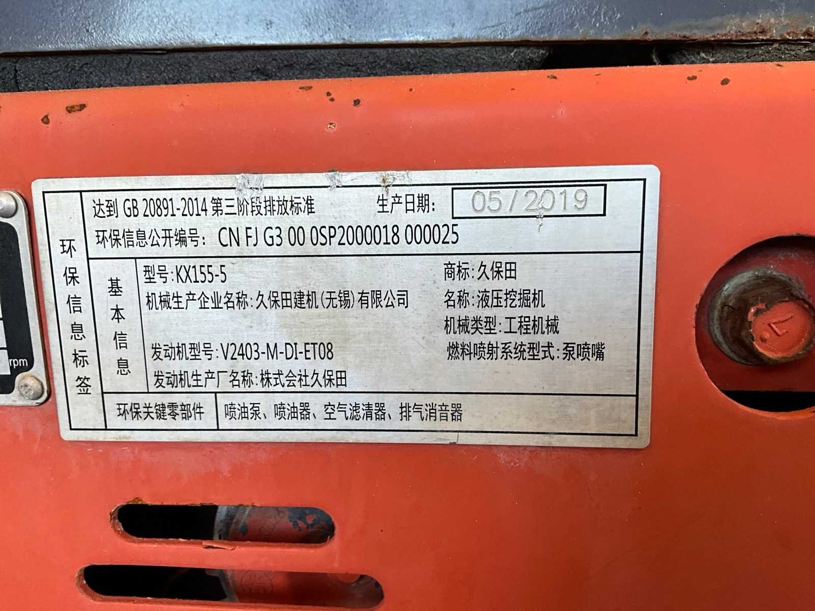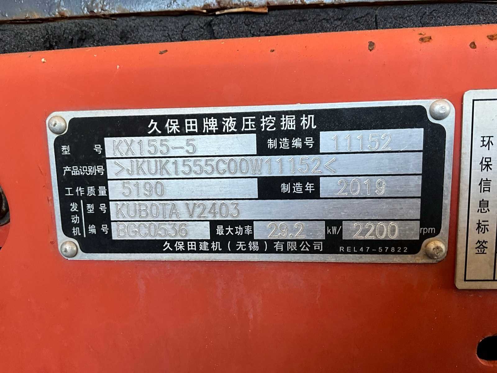 2019 kubota kx155-5 rupsgraafmachine