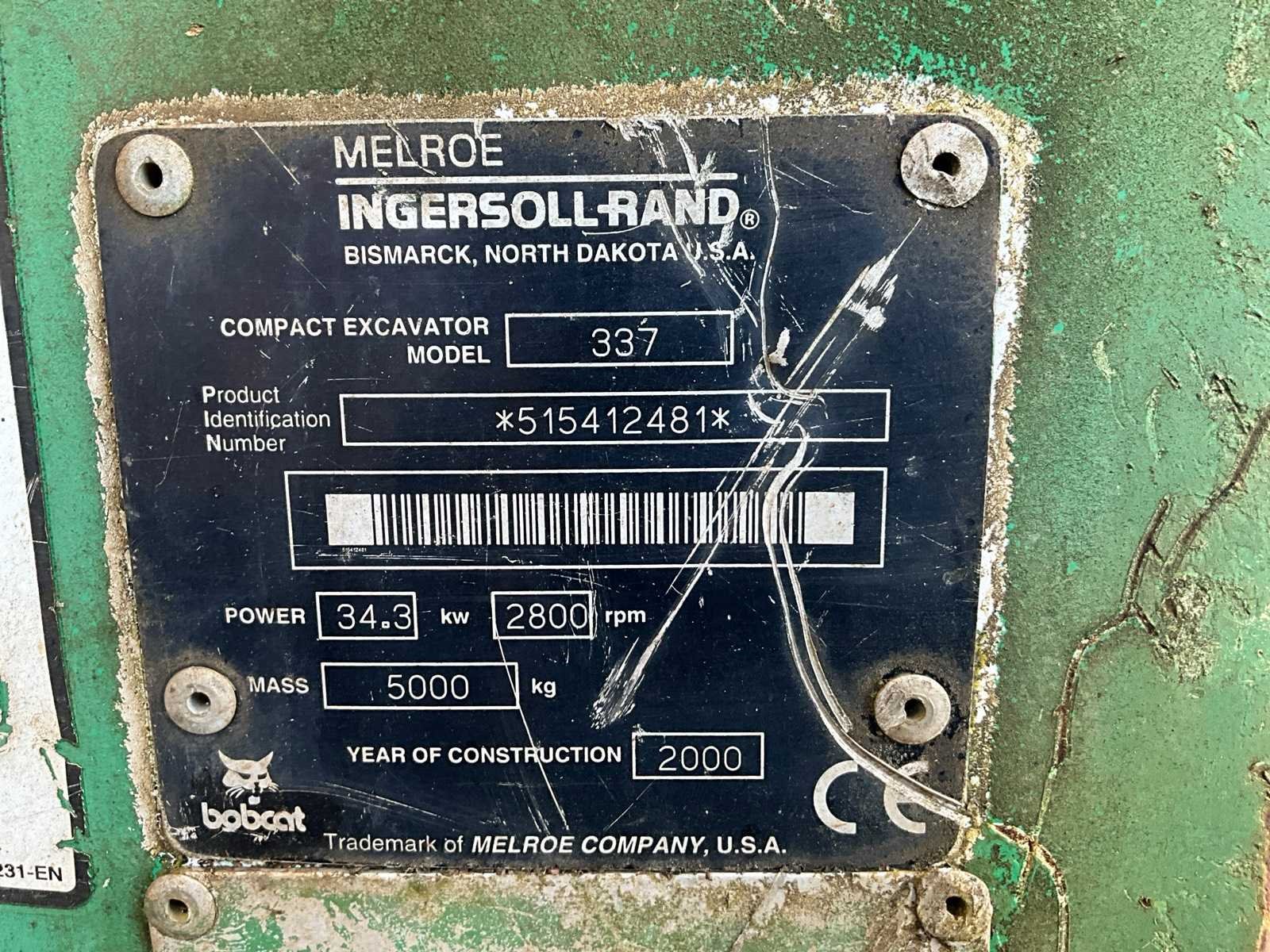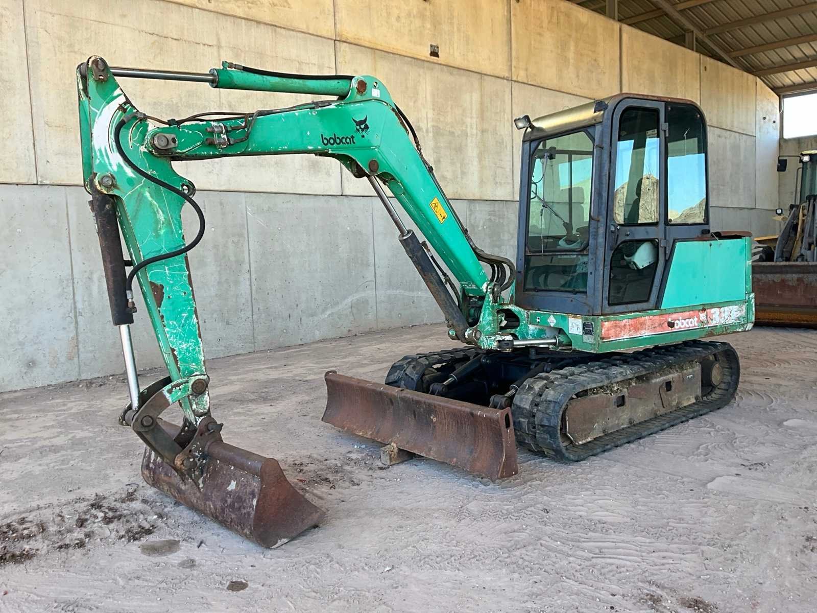 Start maar lekt olie bij starten No Merk: Bobcat Type: 337 Bouwjaar: 2000 Serienummer: 515412481 Motorvermogen (kW): 34.3kW Graafbak afm. b: 1250mm Rups breedte: 400mm Eigen gewicht: 5000kg