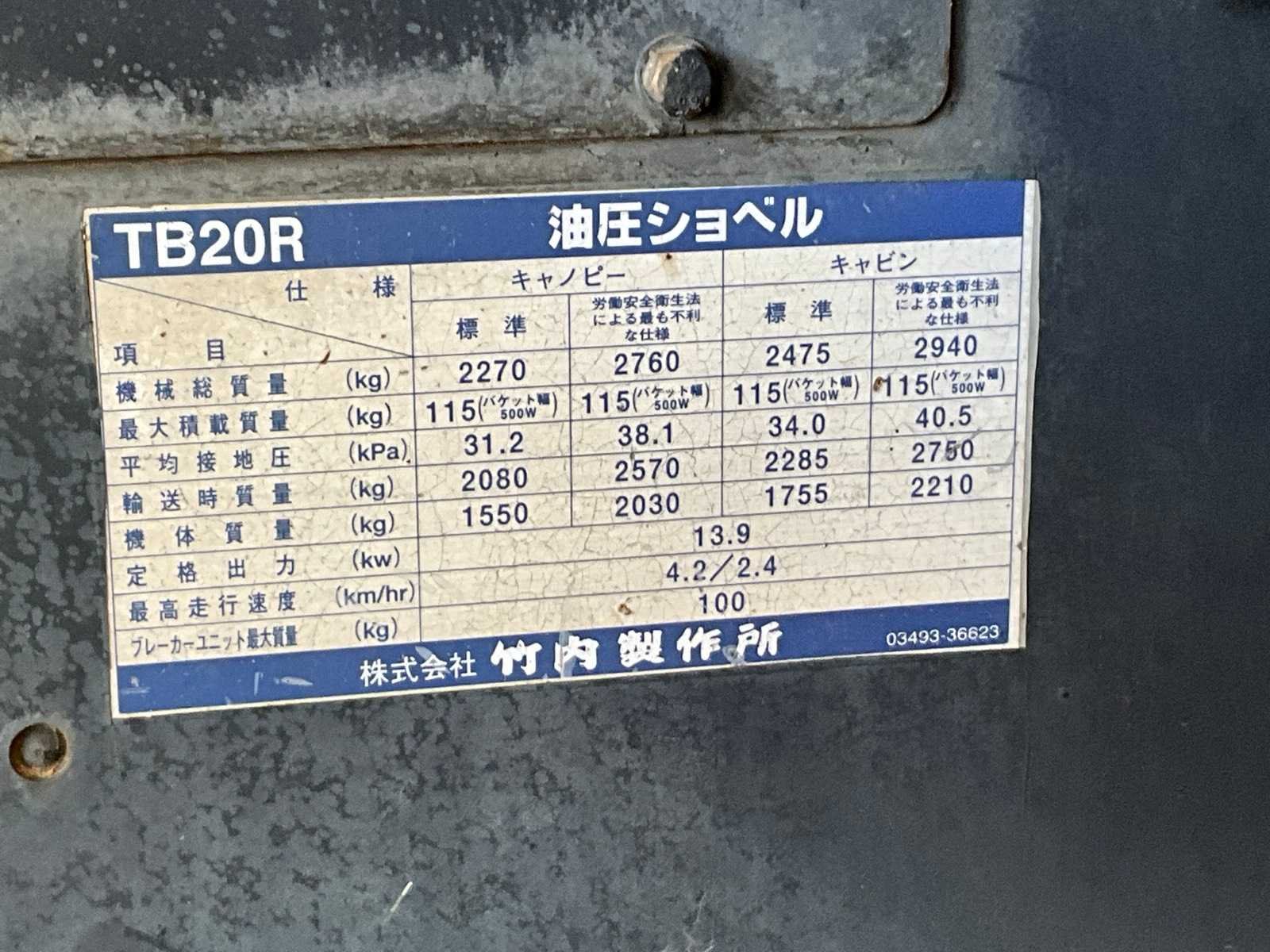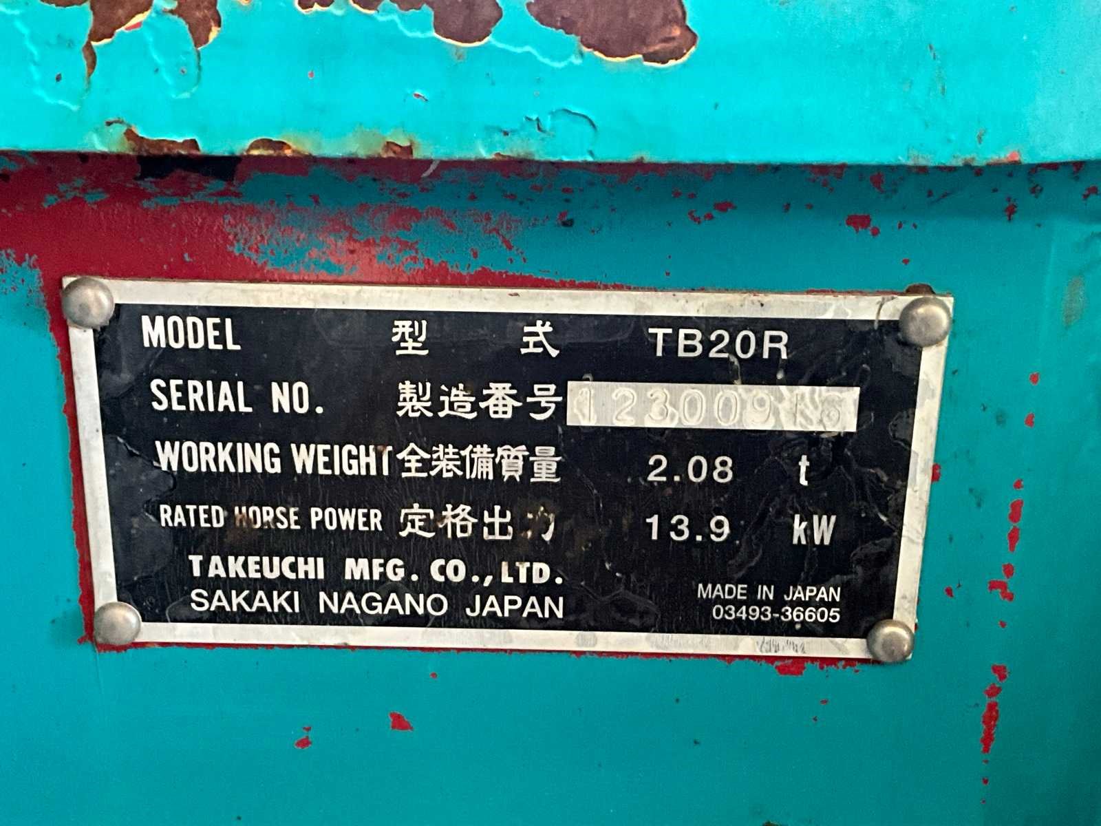 No Merk: Takeuchi Type: TB20R Serienummer: 12300916 Afgelezen urenstand: 1616