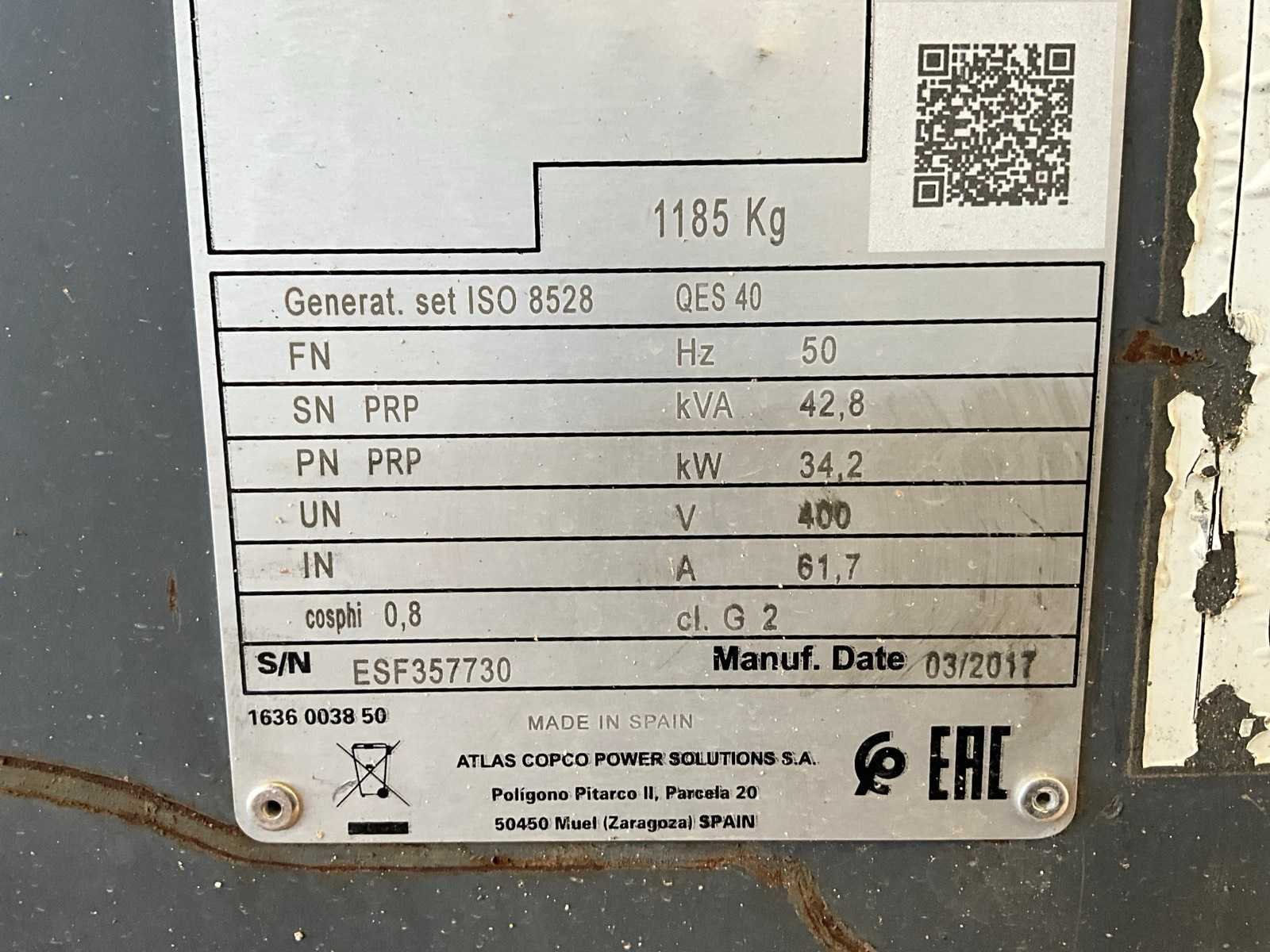 2017 atlas copco qes40 generator