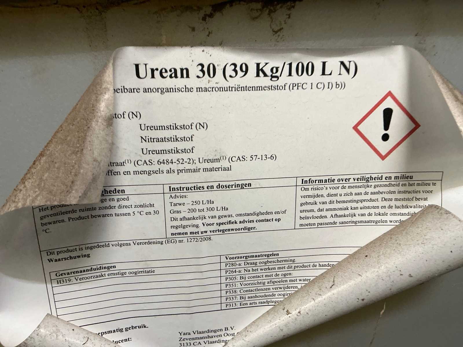 Circa 950 liter Urean 30 vloeibare meststof Nee