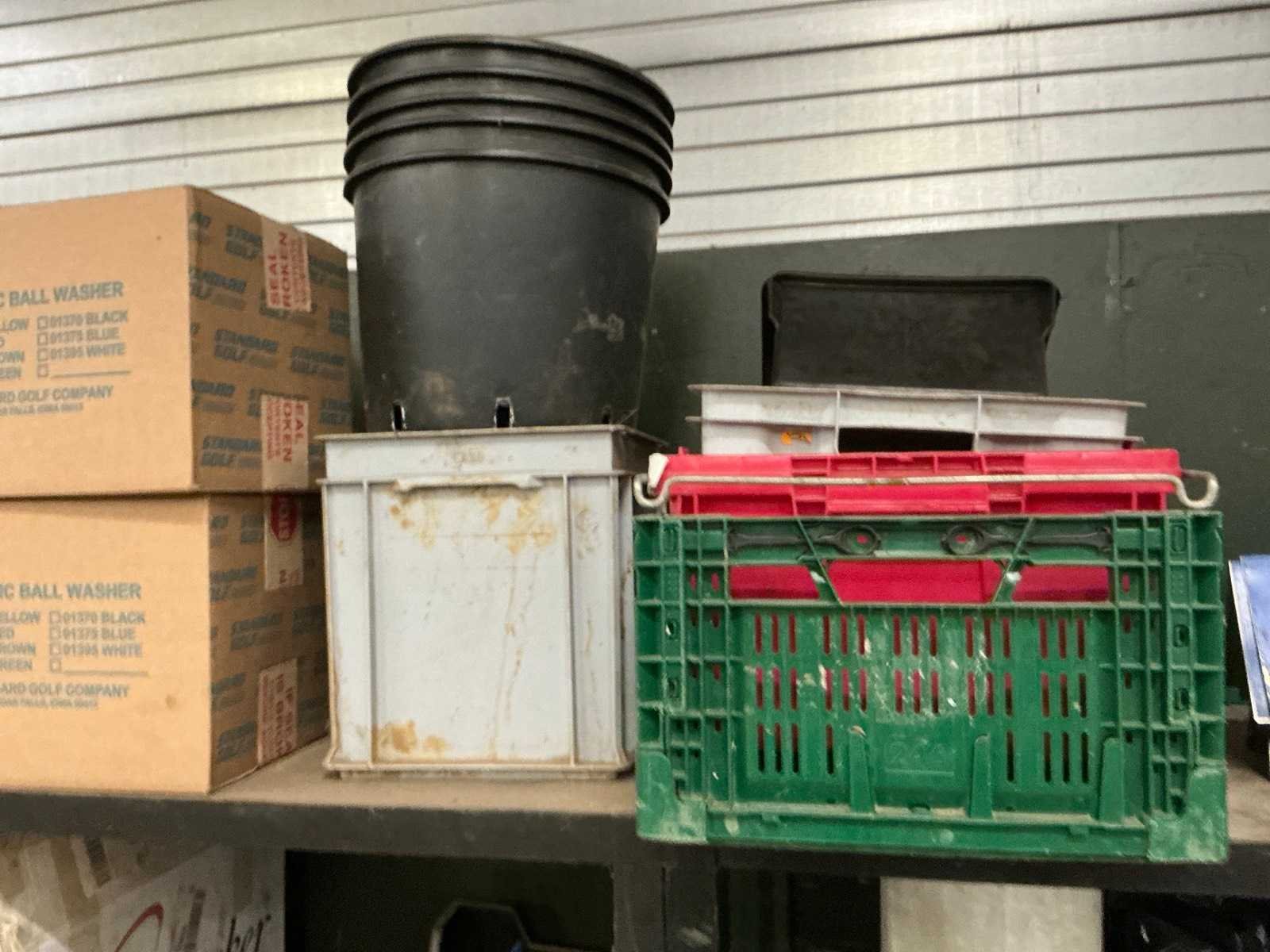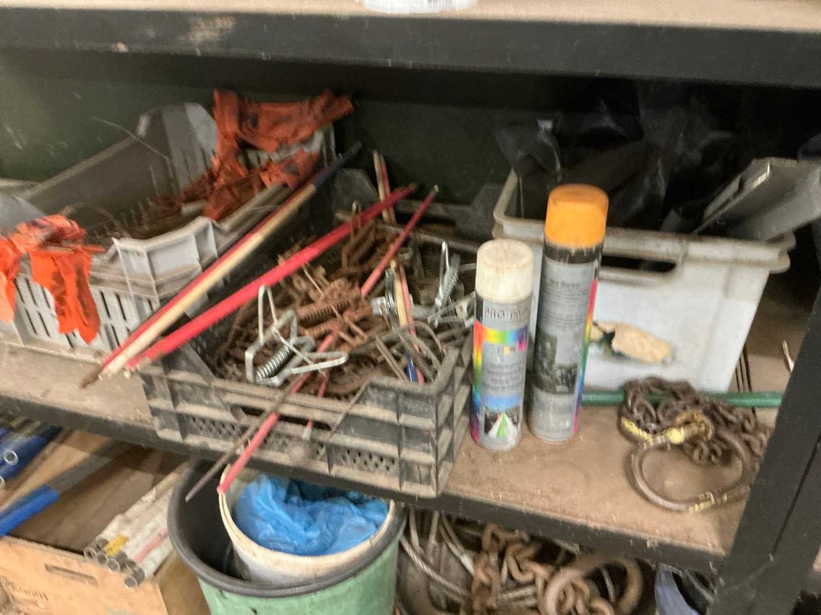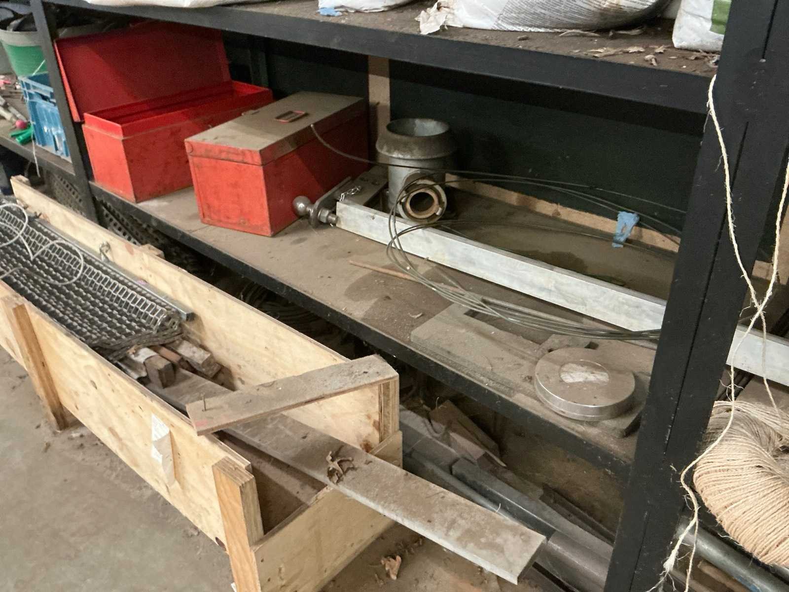 Waaronderkratten, Stanley koffer, holes, emmers, hijsketting, ball washers, tee towel, gronddoek, spanriemen, ….. zijnde inhoud 4-delige gelaste rek 70x720xH163cm (zonder lot 78), inclusief rek, koper dient alles mee te nemen Nee