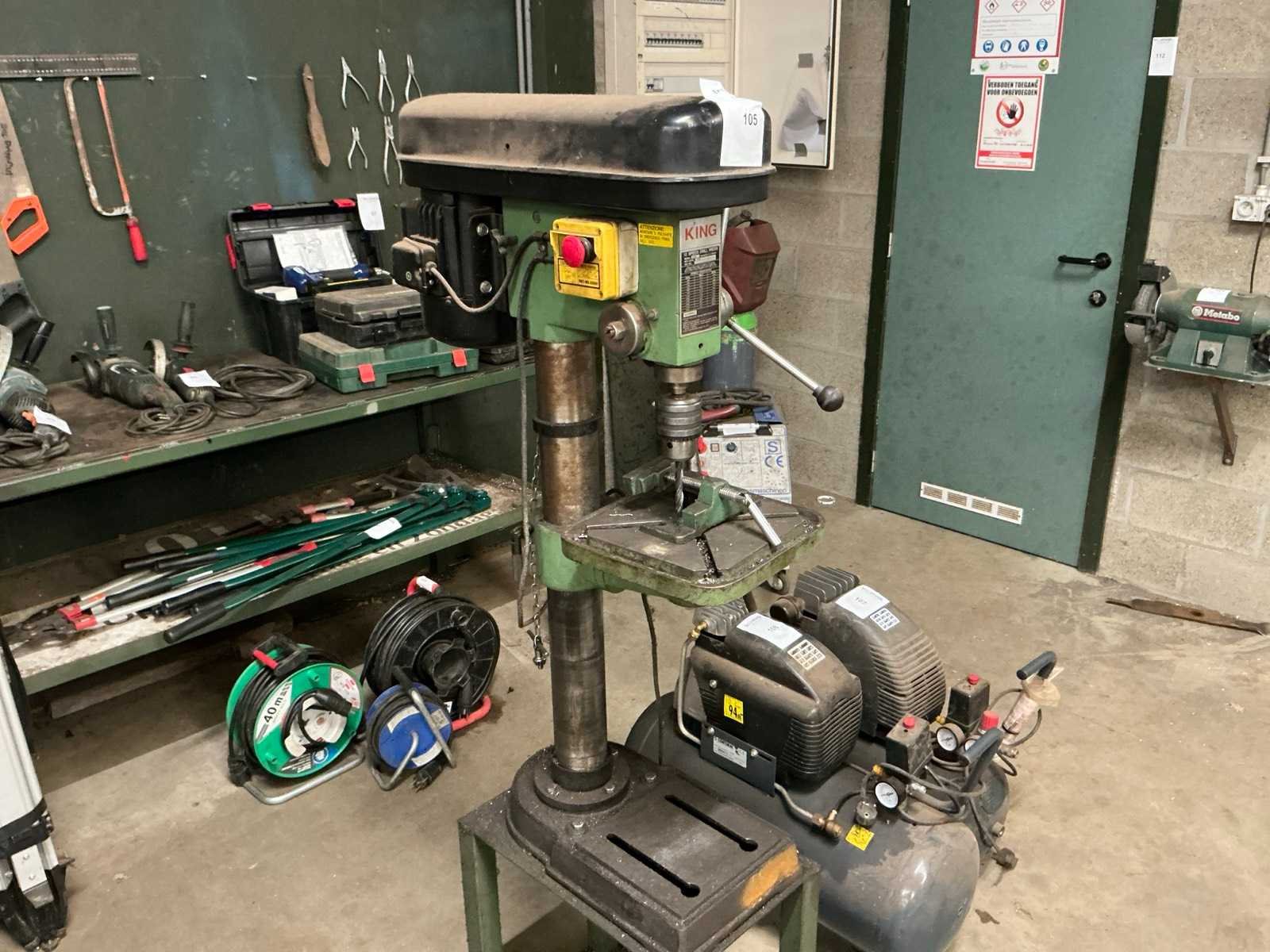 Op mobiel onderstel Nee Merk: King Type: CH16 Aantal snelheden: 12 Spindelsnelheid van n =: 280rpm Spindelsnelheid tot n =: 2300rpm Tafel afmeting l: 27mm Tafel afmeting b: 270mm Motorvermogen (kW): 0.55kW Aansluiting: 230V Afmeting h: 1600mm
