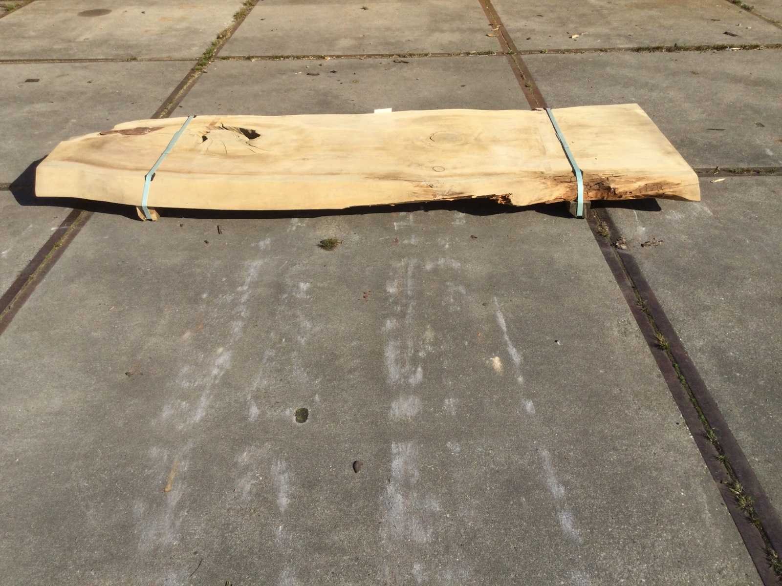 Omschrijving: geschuurd - buitengebruik - opmeting midden blad Nee Lengte: 2570mm Breedte: 800mm Hoogte: 80mm