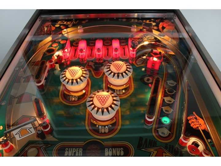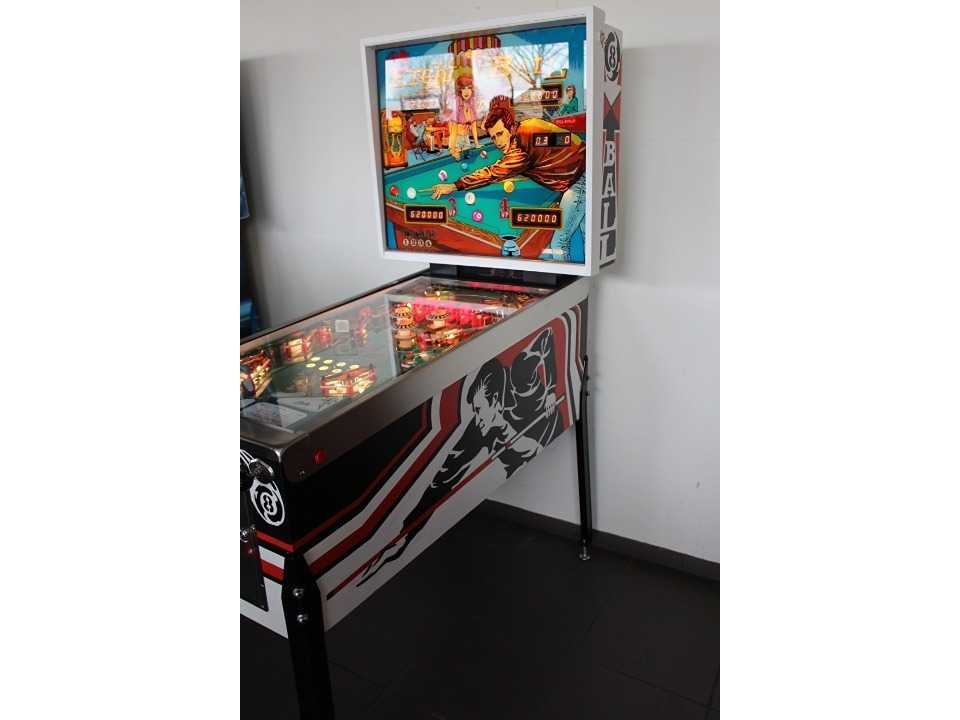 1-4 spelers, electronisch, geheel gereviseerd tot nieuwstaat, pool thema met The Fonz uit de serie Happy Days, diverse licht- en geluidseffecten Nee Merk: Bally Type: Eight Ball Bouwjaar: 1977