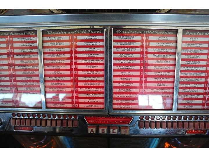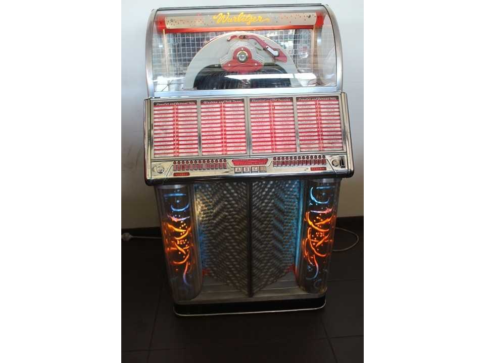 104 selecties, 45 tpm singles (worden erbij geleverd), goed spelend, compleet met coinmechanisme Nee Merk: Wurlitzer Type: 1700 Bouwjaar: 1954