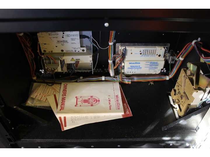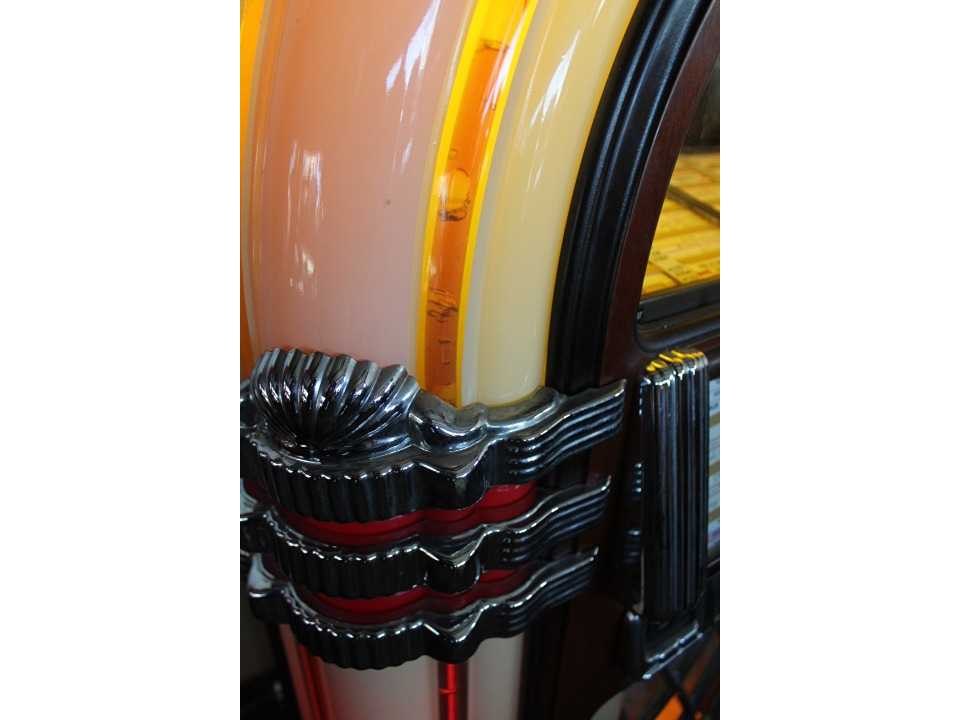 100 selecties, 45 tpm singles (worden erbij geleverd), digitaal display, bubble tubes, draaiende en verkleurende pilasters, 200 Watt vermogen Nee Merk: Wurlitzer Type: 1015 One More Time Bouwjaar: 1994 Model: Vinyl uitvoering Gewicht: 115 Lengte: 640mm Breedte: 815mm Hoogte: 1520mm