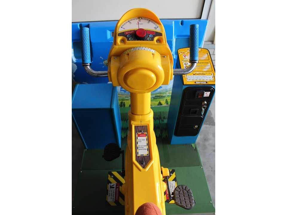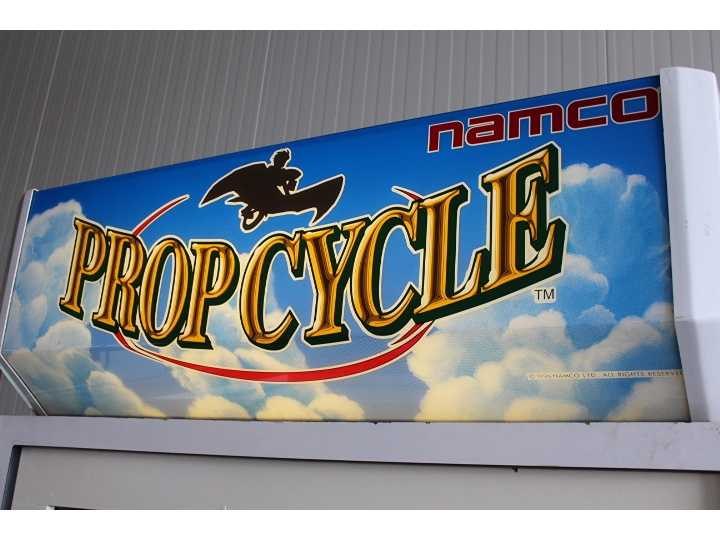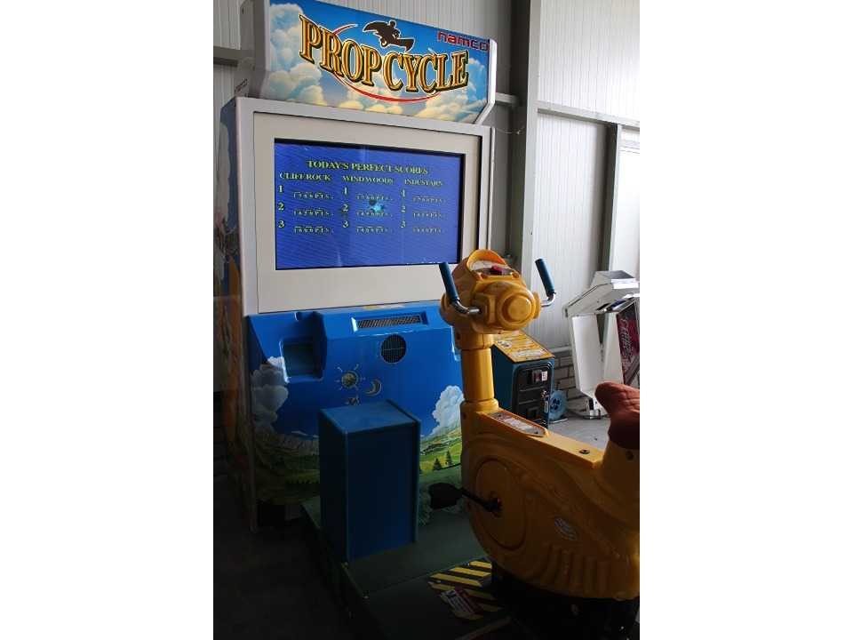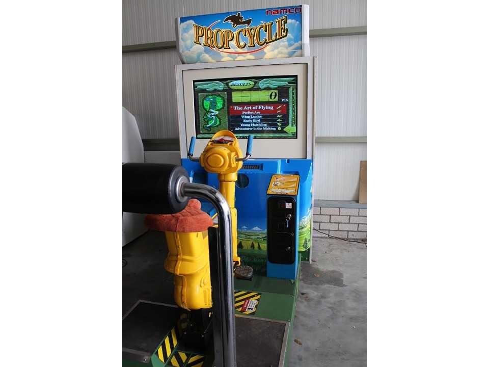 Video arcadespel met luchtfiets, met ventilator voor windeffect, muntinworp of free play Nee Merk: Namco Type: Prop Cycle Lengte: 241cm Breedte: 115cm Hoogte: 229cm Gewicht: 590kg Bouwjaar: 1996