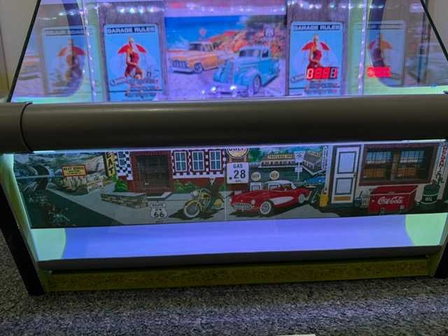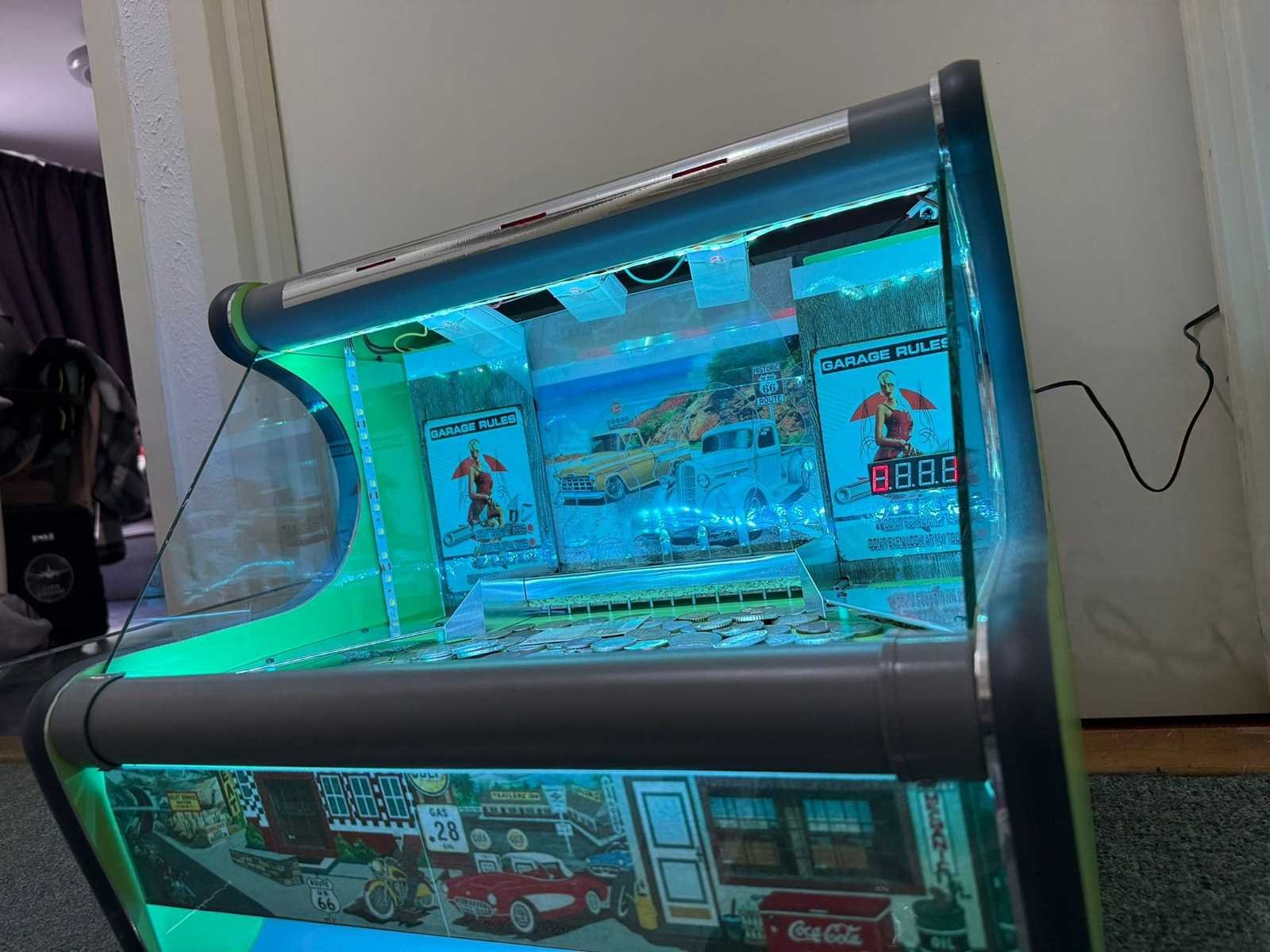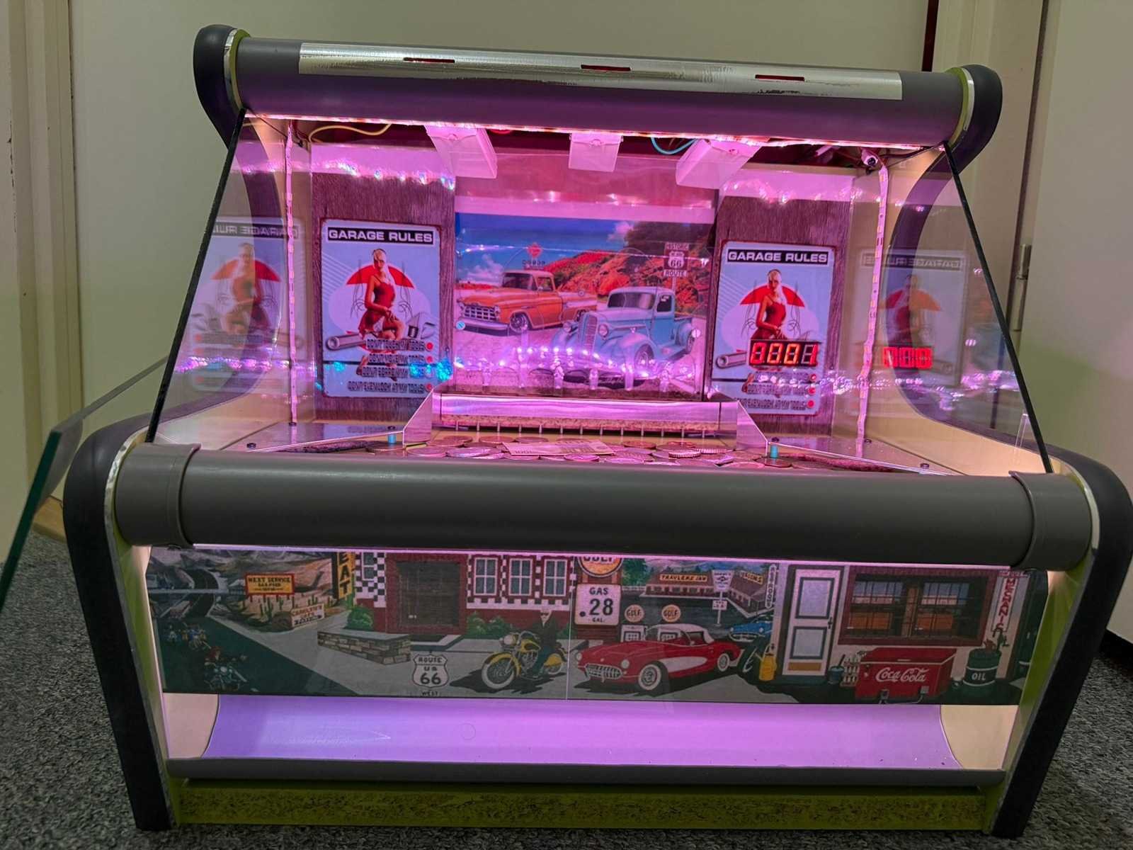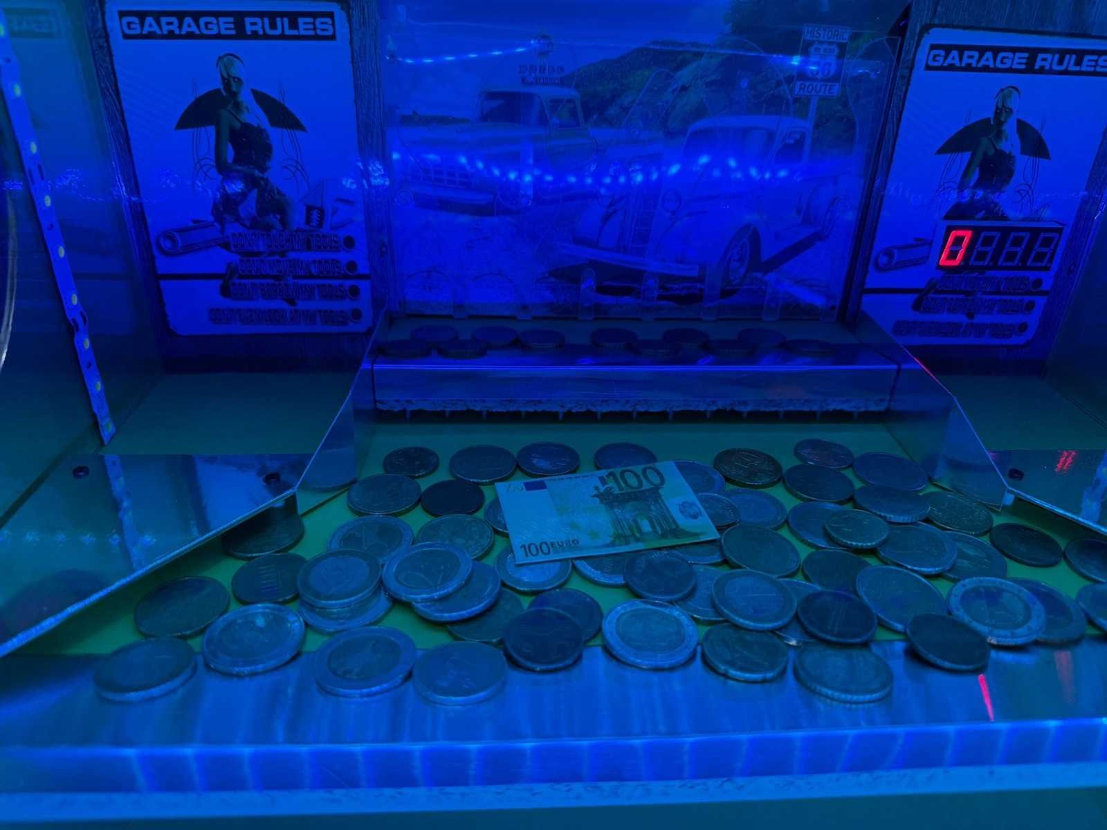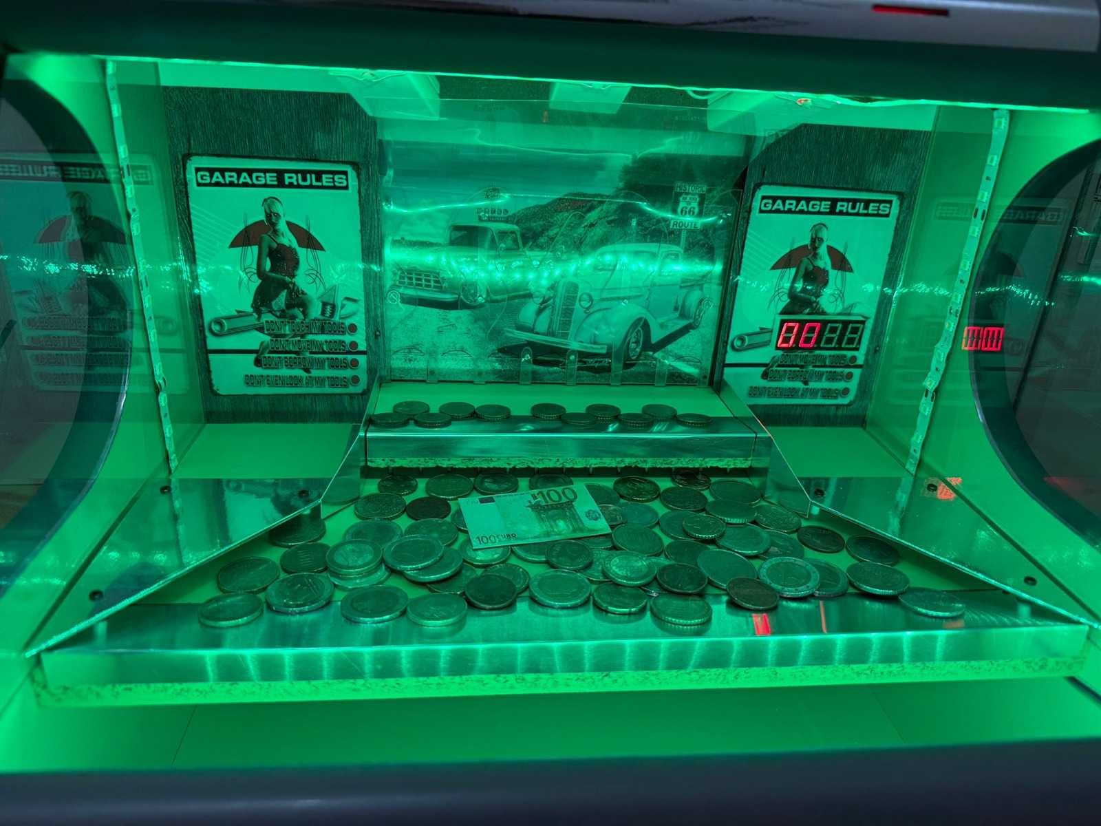 Compacte muntenschuiver op euromunten, met diverse fifties muziek, 220 Volt Nee Merk: Garage Rules
