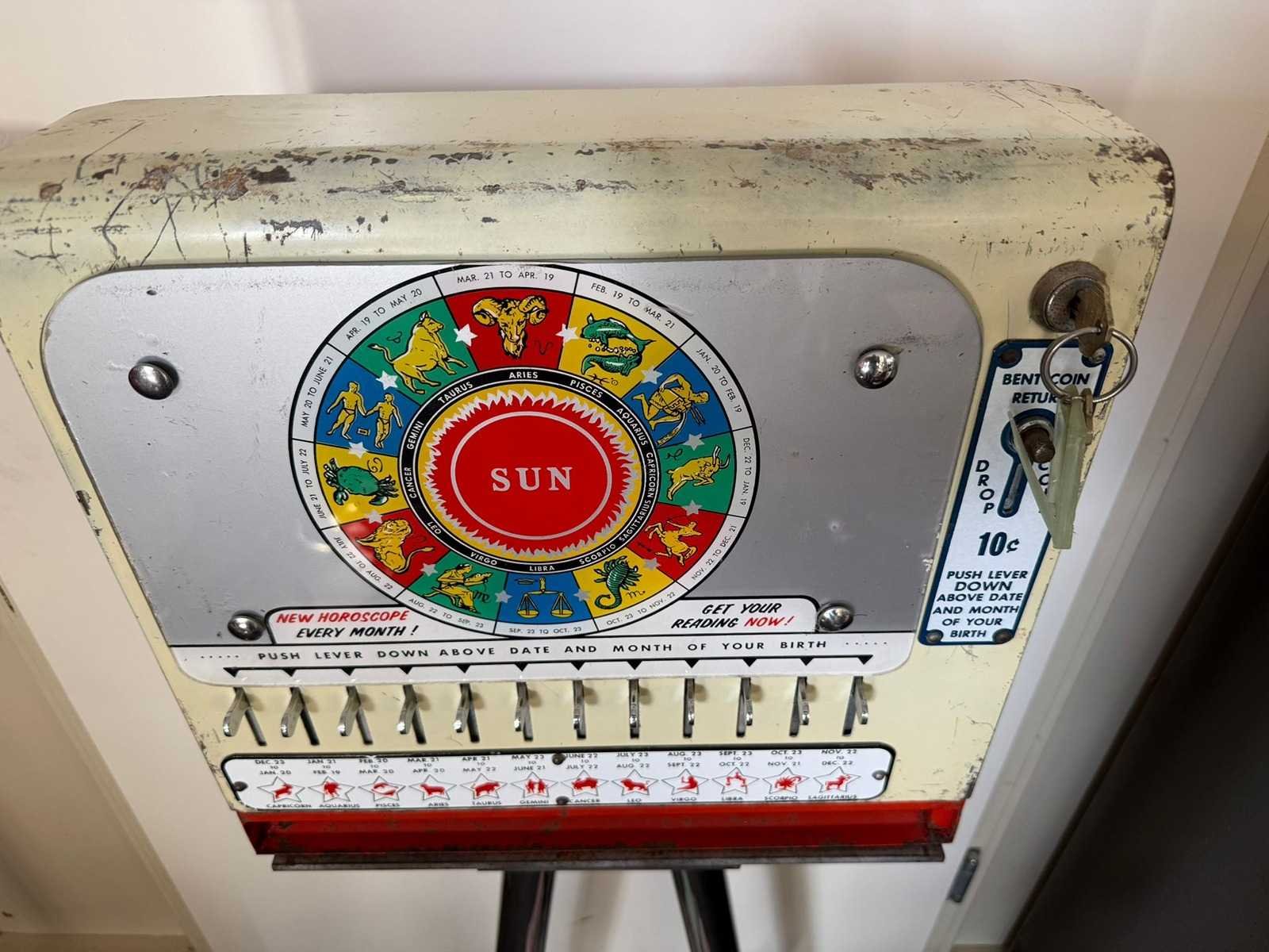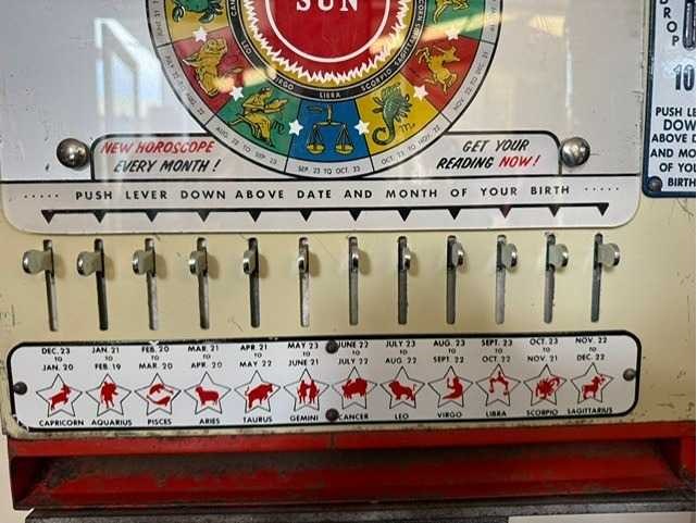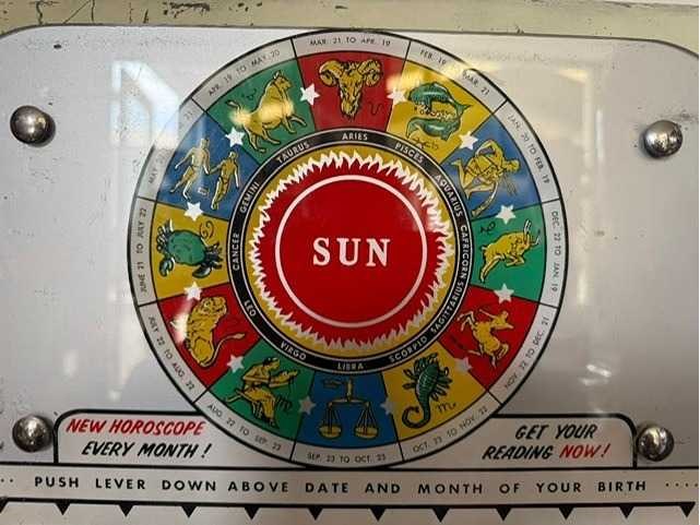 Horoscoopautomaat, geeft na inworp een rolletje met je toekomst Nee Merk: Watling Type: Fortune Teller Breedte: 41cm Hoogte: 115cm