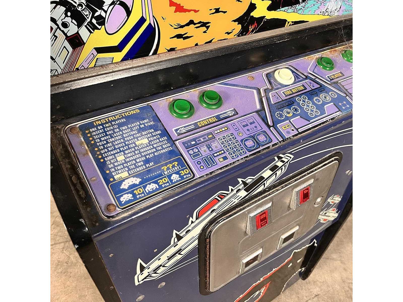 Video arcade uit de bekende arcadehallen jaren 80 van de vorige eeuw Nee Merk: Zaccaria Type: The Invaders Lengte: 74cm Breedte: 64cm Hoogte: 170cm Bouwjaar: 1978