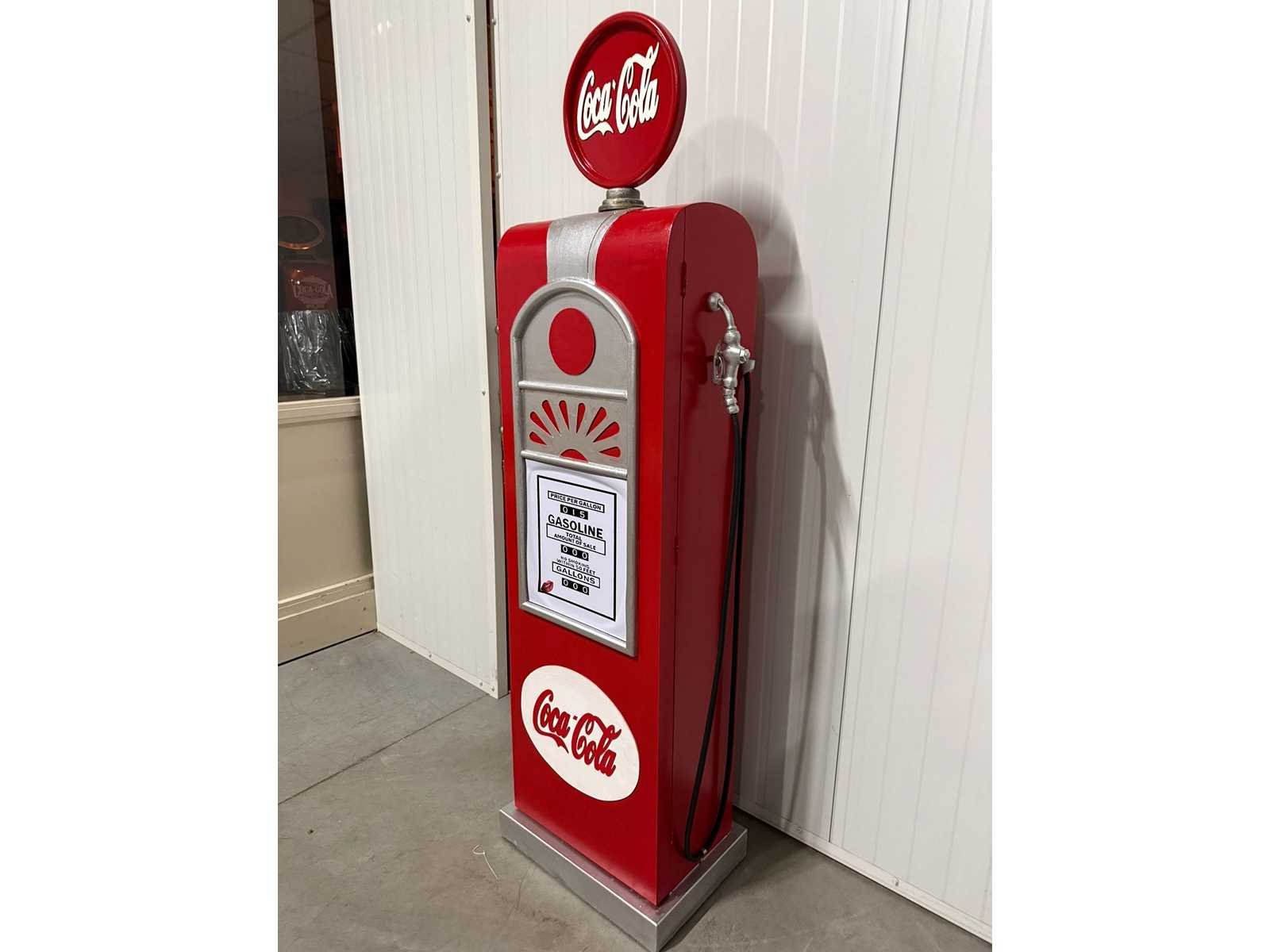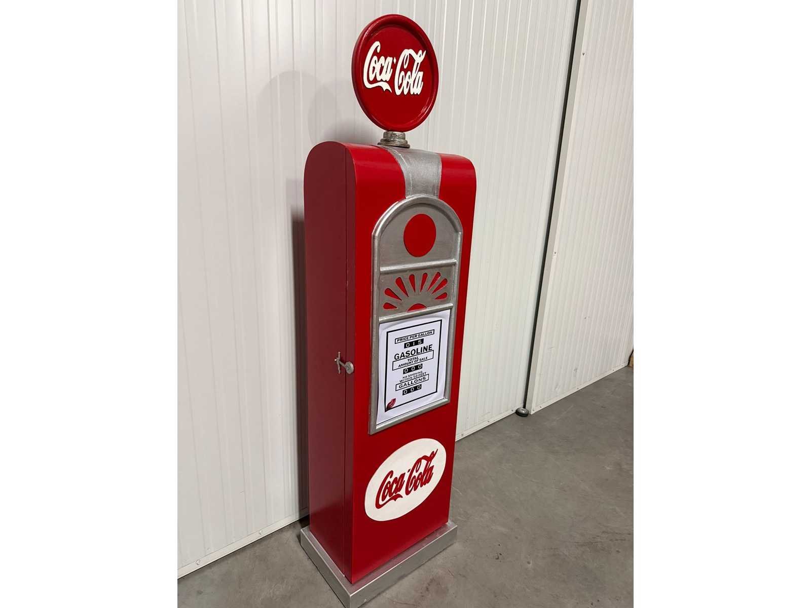 Benzinepompkast met globe en opbergruimte Nee Merk: Coca Cola Lengte: 32 Breedte: 50 Hoogte: 185 Materiaal: Hout/ Metaal/ Glas