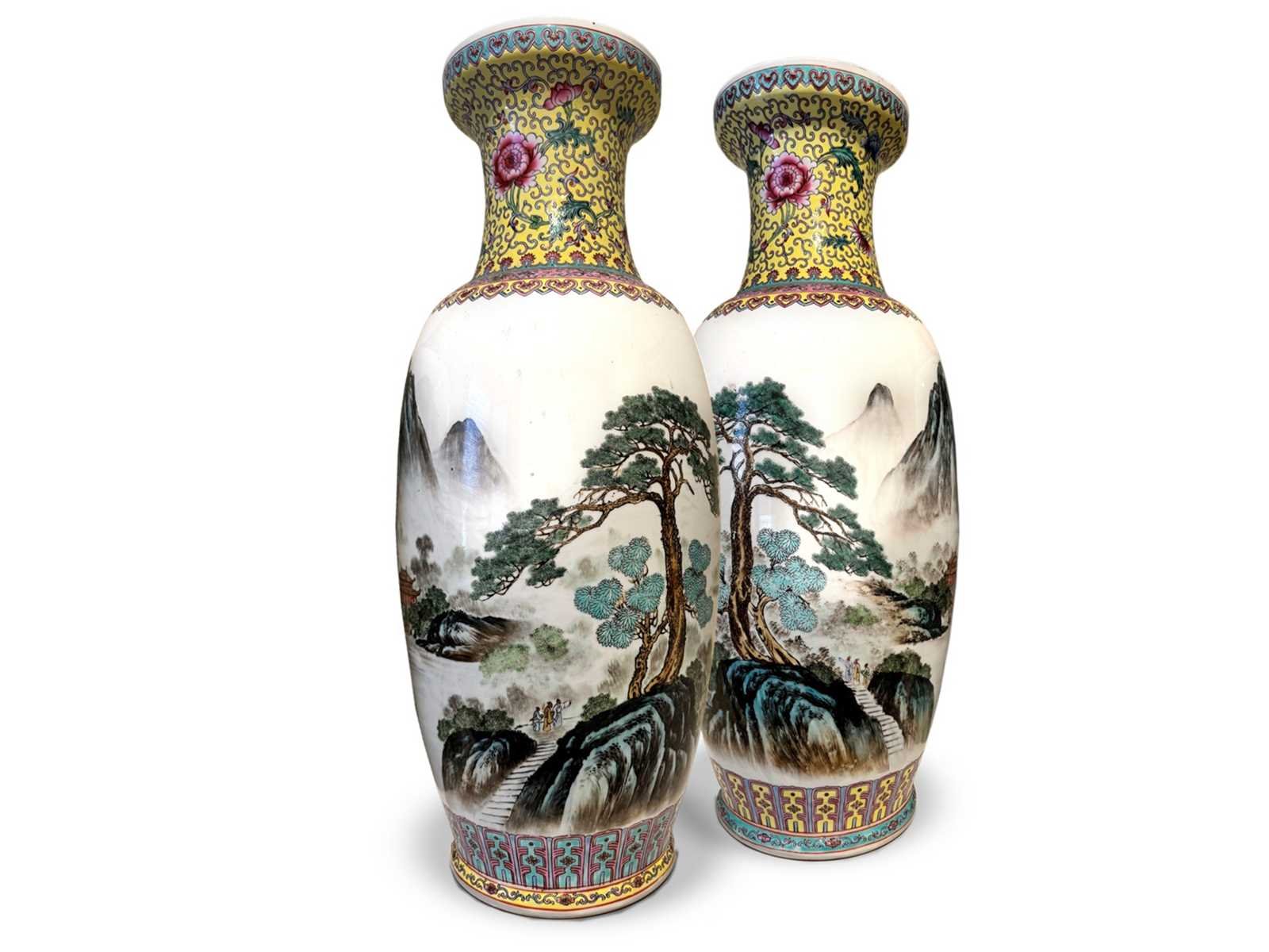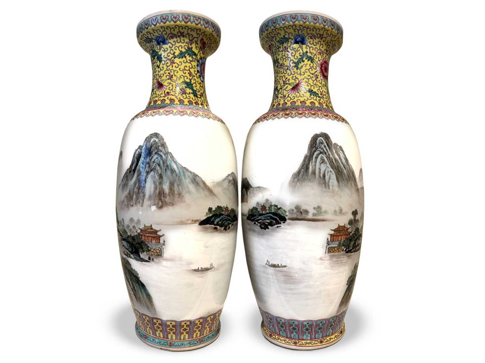Twee grote Jingdezhen vazen. 63cm hoog. Gemerkt aan de onderkant. Nee