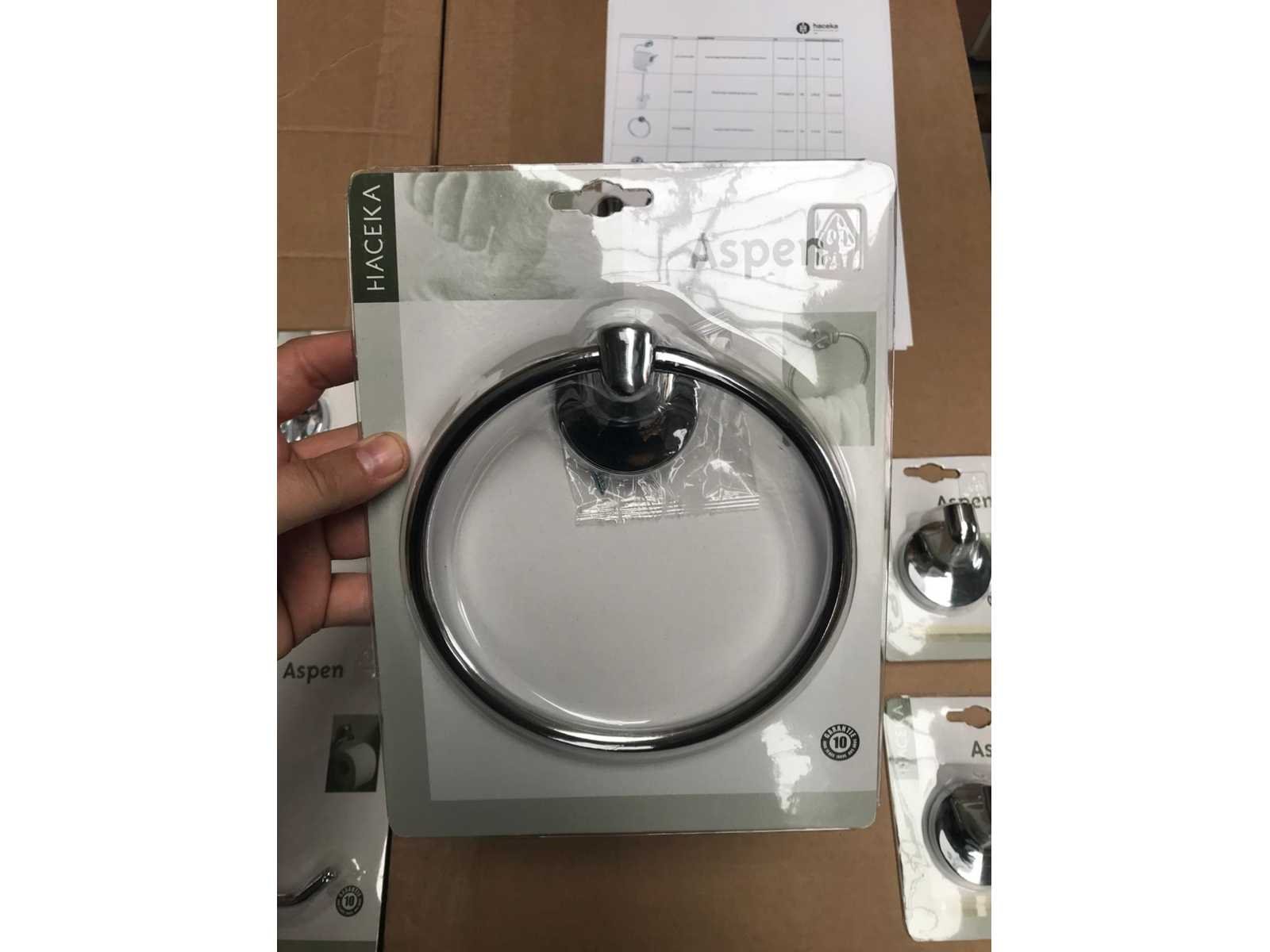 Toilet set accessoires. Nieuw in display. 4200 stuks Haceka Aspen toilet rol houder, EAN: 8711331411404. 780 stuks Haceka Aspen toiletborstel houder, EAN: 8711331411909. 760 stuks Haceka Aspen handdoek houder, EAN: 8711331419605 1390 stuks Haceka Aspen haakje, EAN: 8711331411206 20 pallets in totaal. 7130 stuks in totaal. Verkoopadviesprijs €166.000 Nee 1e: 4200 stuks Haceka Aspen toilet rol houder, EAN: 8711331411404 2e: 780 stuks Haceka Aspen toiletborstel houder, EAN: 8711331411909 3e: 760 stuks Haceka Aspen handdoek houder, EAN: 8711331419605 4e: 1390 stuks Haceka Aspen haakje, EAN: 8711331411206