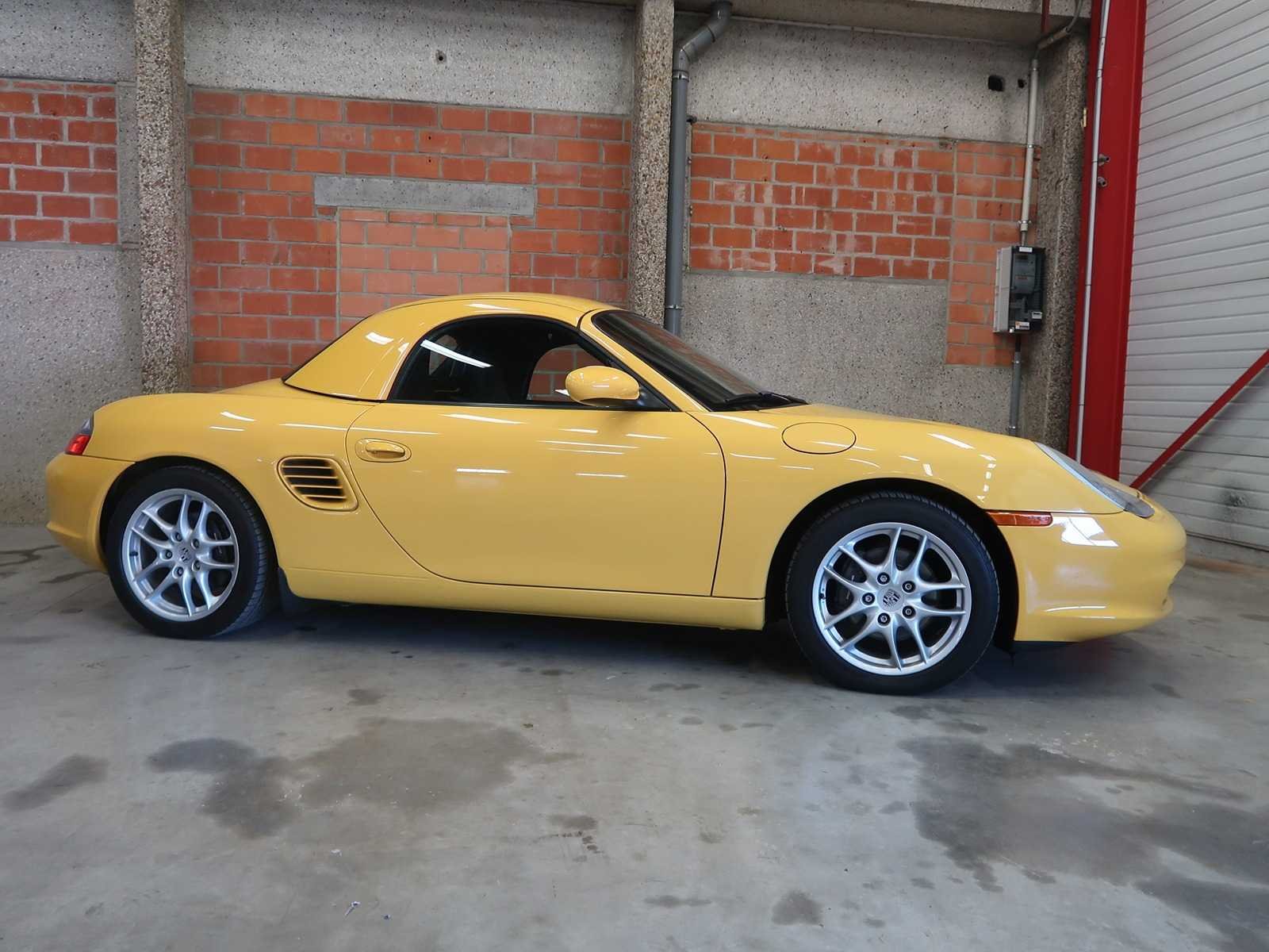 Porsche Boxter 2.7 in zeldzame kleur Speed-Yellow, met bijpassende hard-top. California import. Wagen met USA documenten, taxen en import betaald. Wagen in bezit van car-fax historiek. Eerste eigenaar kocht hem in 2004 en verkocht hem in 2012 naar de tweede eigenaar met 100784 Miles, de tweede eigenaar verkocht hem op 120761 Miles. De wagen kwam daarna naar België. BTW Wagen. Afgelezen km stand 120000 Miles No Chassisnummer: WP0CA29874S621079 Merk: Porsche Model: Boxter Brandstof: benzine Datum eerste toelating: 11/08/2004 Boorddocumenten aanwezig?: true Nationaliteit documenten: usa Kentekenpapieren compleet?: true Carrosserie: Cabriolet Transmissie: Manueel Drive type: Achterwiel Vermogen (pk): 228 Vermogen (kW): 191 Aantal deuren: 2 Aantal zitplaatsen: 2 Aantal sleutels: 1 USA titel: ja Kleur: geel Cilinderinhoud: 2700 Aantal cilinders: 6 Afgelezen mijlenstand: 120000mi
