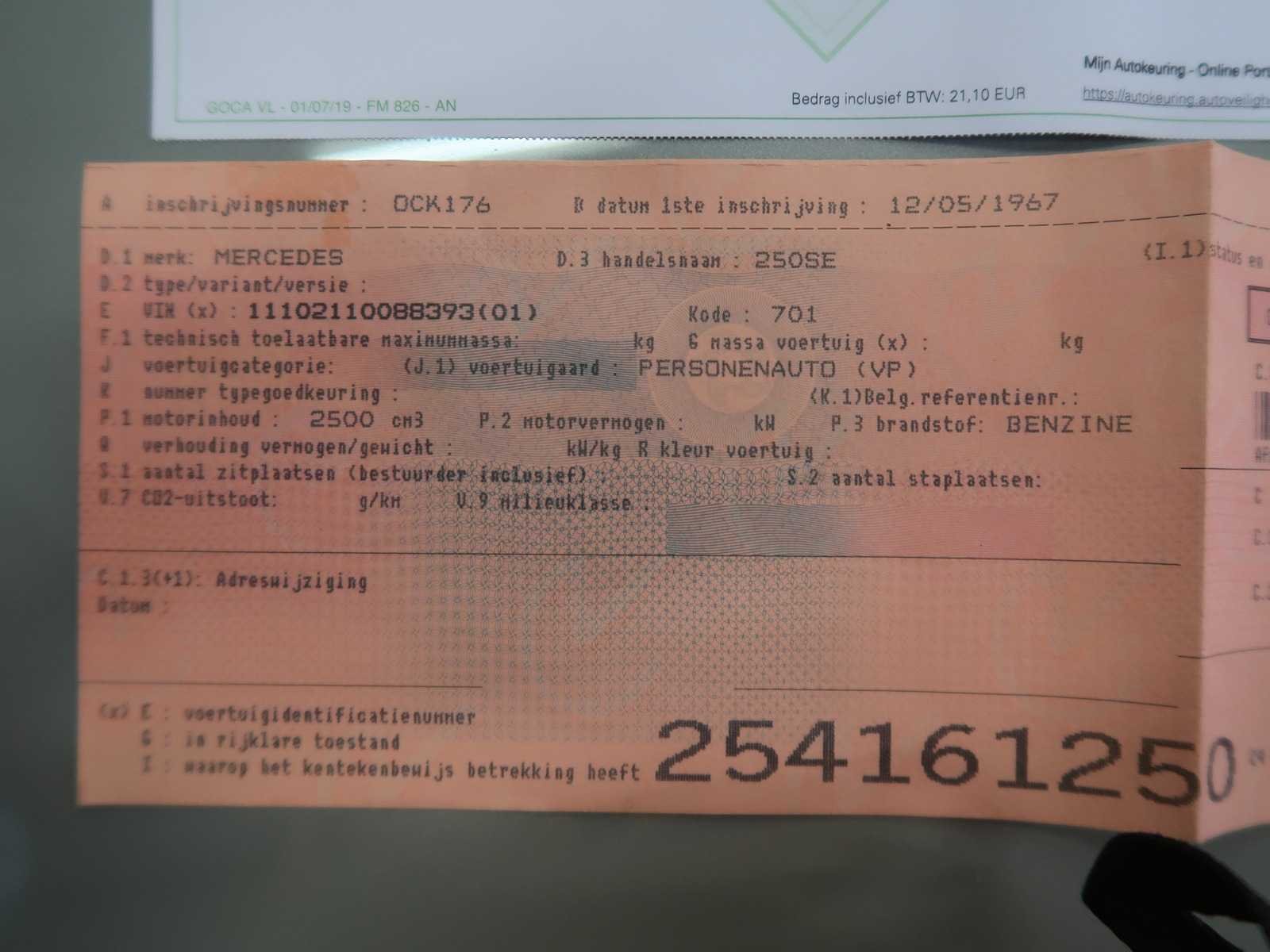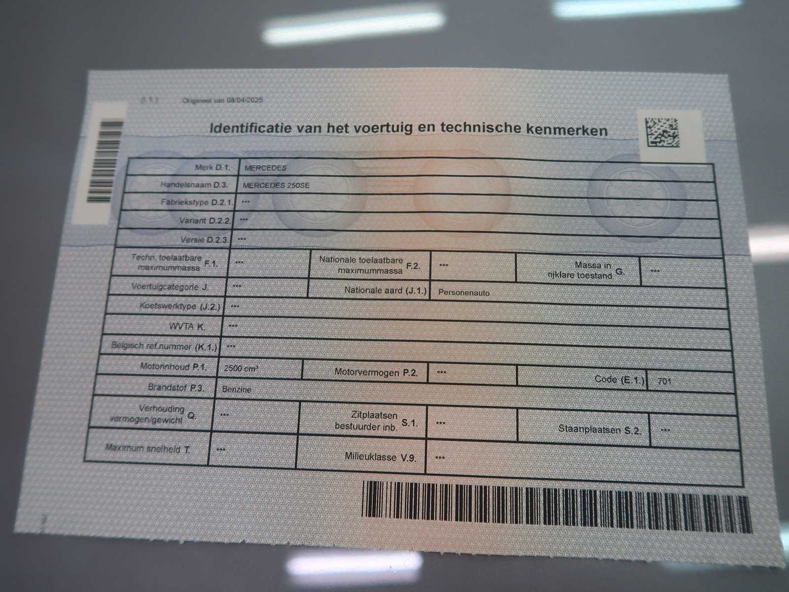 Beautiful Mercedes 250SE Coupe. The car is driven only in good weather and handles superbly. Currently, it is equipped with a 280 6-cylinder engine under the hood, which performs exceptionally well. For the true enthusiast of a beautiful Coupe, this is a wonderful opportunity. No Chassisnummer: 11102110088393 Merk: Mercedes Model: W111 Type: 250Se Afgelezen kilometerstand: 35378km Brandstof: Gasoline Datum eerste toelating: 12/05/1967 Nationaliteit documenten: BE Carrosserie: Coupe Transmissie: Automatic Drive type: Achterwiel Aantal deuren: 2 Aantal zitplaatsen: 4 Stuurwiel: Left Aantal sleutels: 1 Startinformatie: Start, Drive, Brake Kleur: Silver Cilinderinhoud: 2800 Aantal cilinders: 6