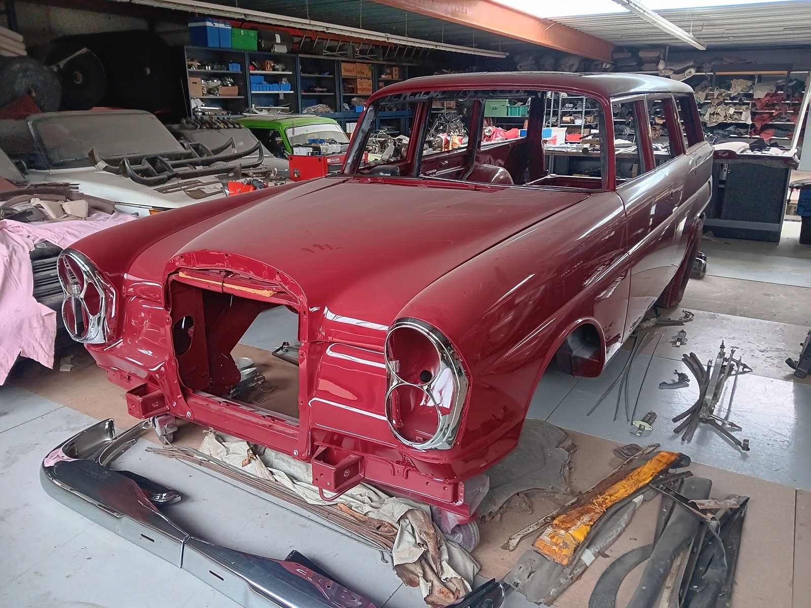Very rare and beloved Mercedes Universal in luxury version including: webasto roof, air conditioning and 7 seats. The Estate built by the Belgian company I.M.A in Mechelen. Probably only 3 right-hand drive versions of produced. Concerns a finishing, overcomplete project. This because the previous owner still had a “donor car” available. Fully complete. Already over 80 percent of the chrome work renewed. Engine and gearbox have recently had an overhaul, as well as suspension parts and axles. A rare car for the enthusiast. No Merk: Mercedes Model: 230 S Universal Estate Afgelezen kilometerstand: 1000km Brandstof: gasoline Datum eerste toelating: 1966 Nationaliteit documenten: UK Carrosserie: station Aandrijving: rear Transmissie: Automatic Vermogen (pk): 171 Aantal deuren: 5 Aantal zitplaatsen: 7 Stuurwiel: right Startinformatie: /// Kleur: Bordeaux Cilinderinhoud: 2306 Aantal cilinders: 6
