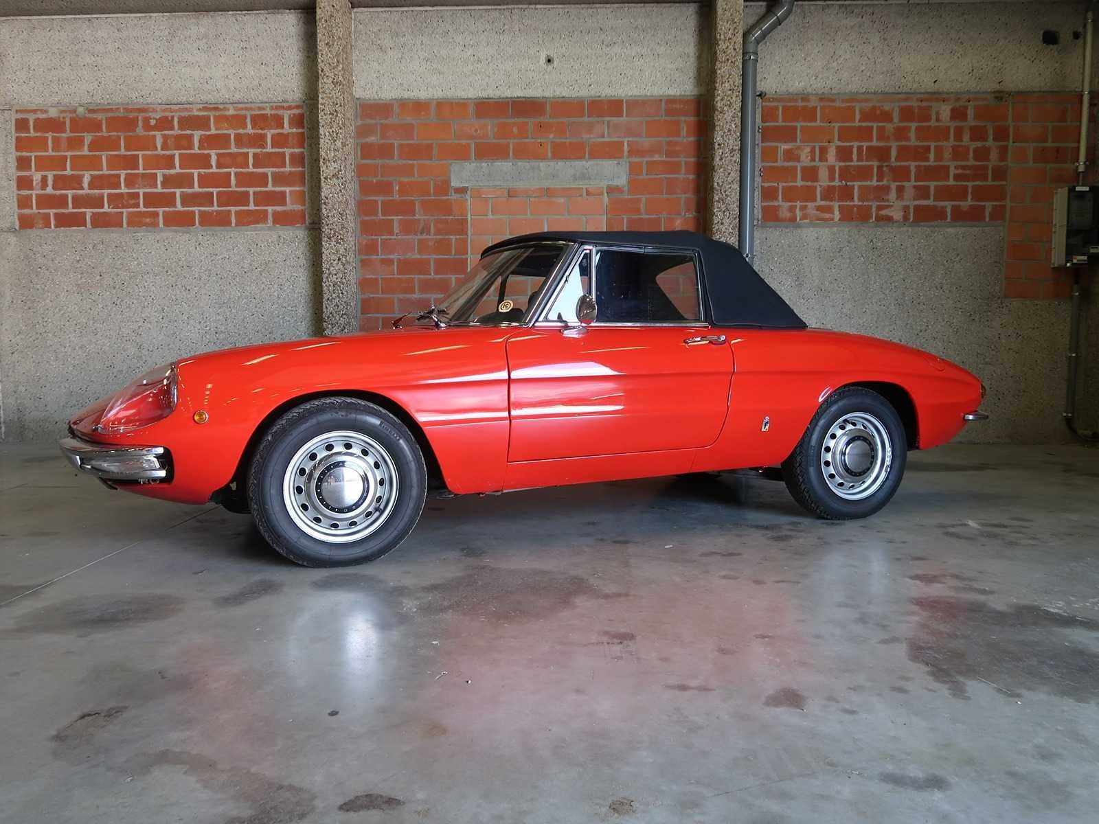Alfa Romeo Duetto spider. 1969. Belgische documenten. Afgelezen stand 72000km. No Chassisnummer: AR1412268/94 Merk: Alfa Romeo Model: Duetto Type: Spider Afgelezen kilometerstand: 72000km Brandstof: Benzine Datum eerste inschrijving: 01/07/1969 Datum eerste toelating: 01/07/1967 Nationaliteit documenten: België Kentekenpapieren compleet?: true Carrosserie: cabriolet Transmissie: Manueel Drive type: Achterwiel Vermogen (pk): 115 Vermogen (kW): 83 Aantal deuren: 2 Aantal zitplaatsen: 2 Aantal sleutels: 1 USA titel: neen Kleur: rood Cilinderinhoud: 1800 Aantal cilinders: 4 Ledig gewicht: 1100