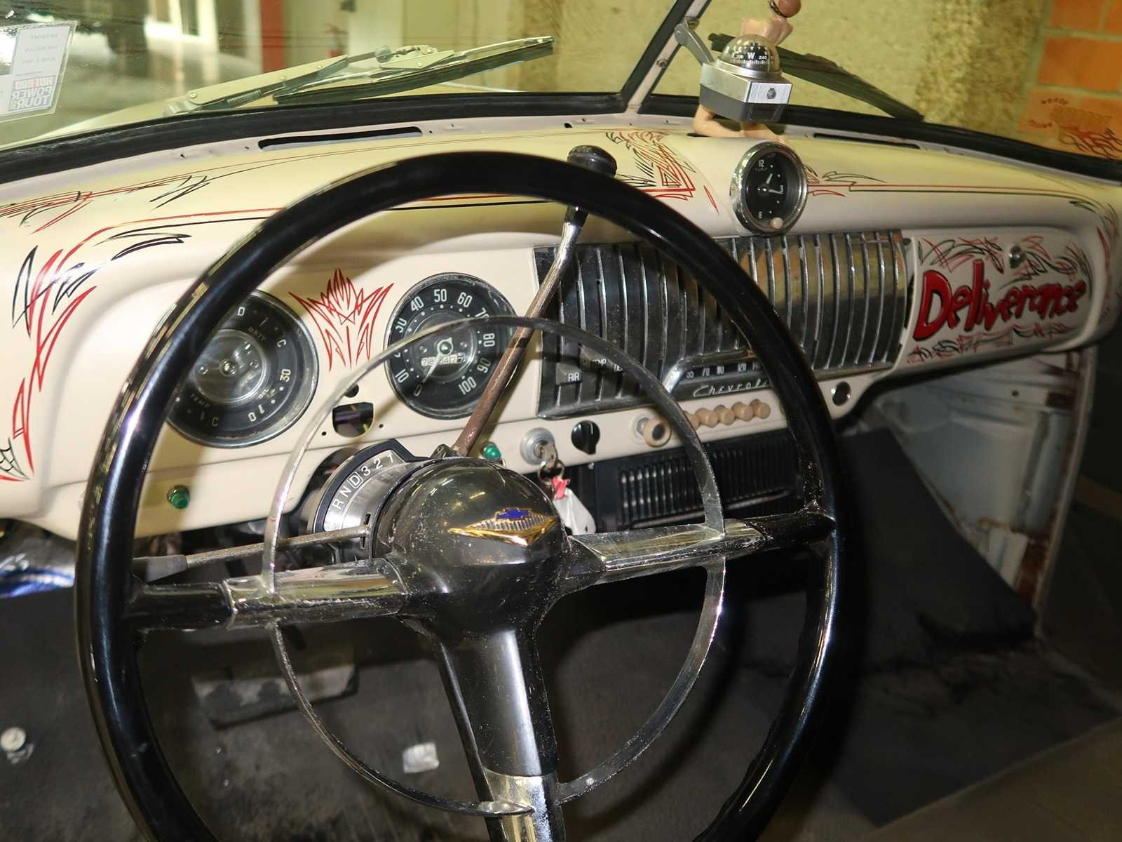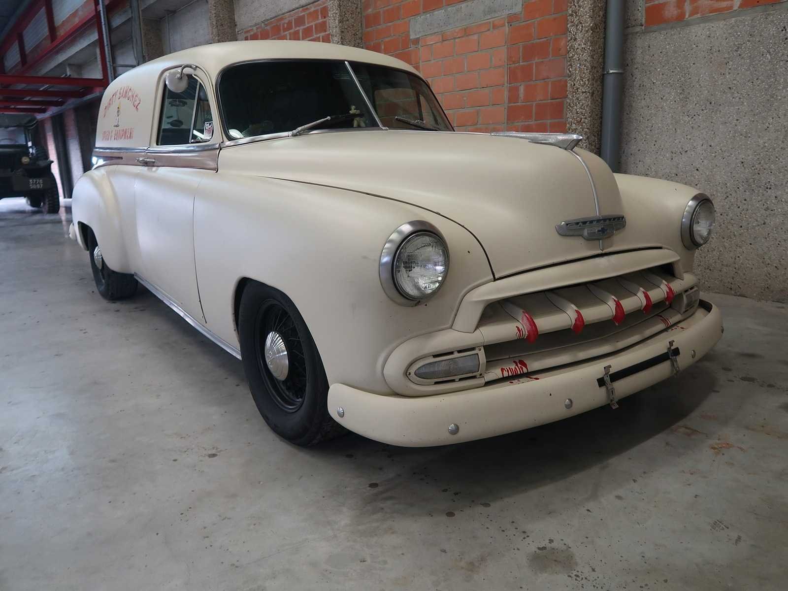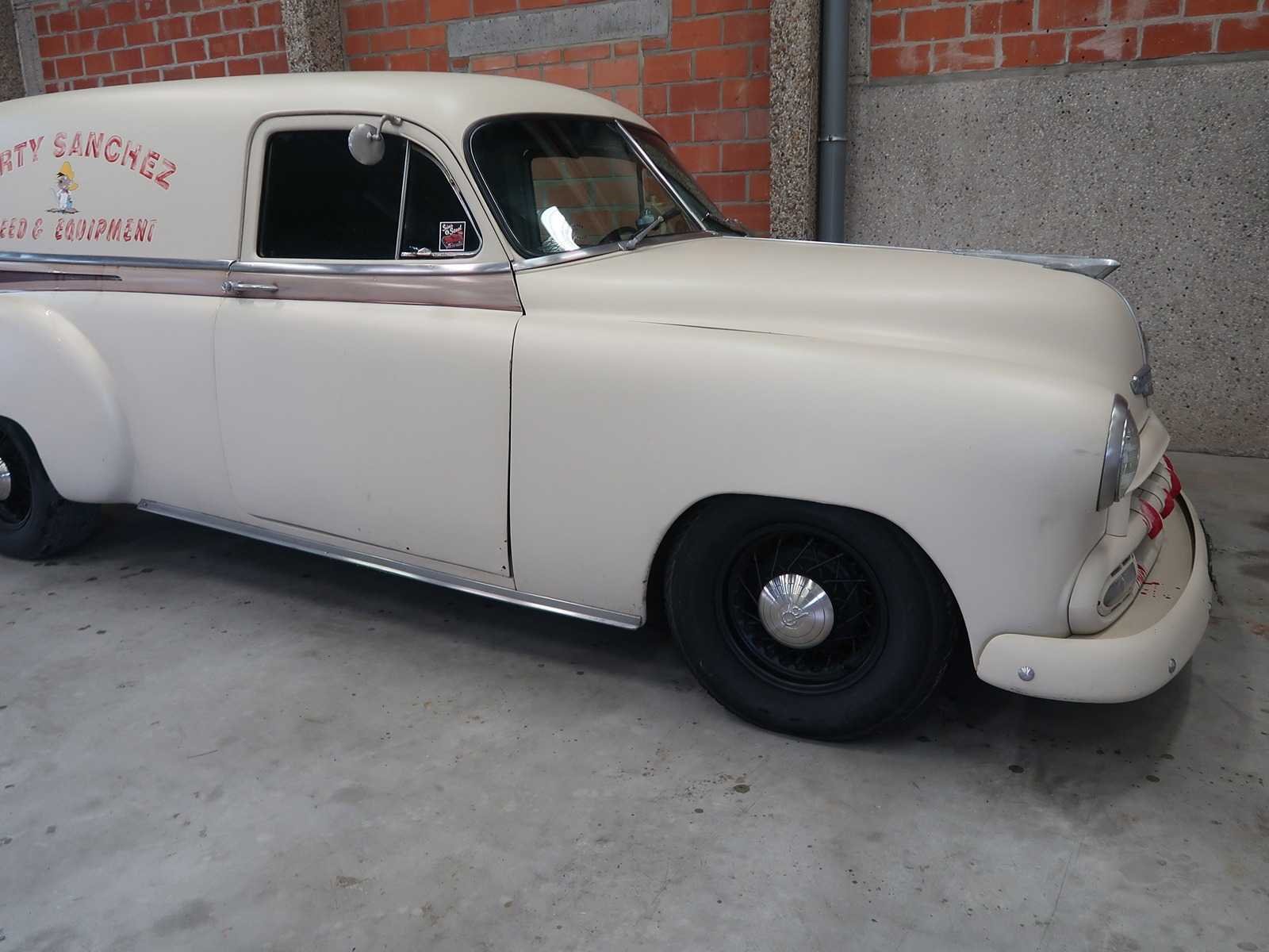 Beautiful “RAT” look Chevrolet Delevery Van. Starts, drives and brakes properly. Belgische documenten. No Merk: Chevrolet Type: Delivery Van Bouwjaar: 1952 Chassisnummer: 792179632 Afgelezen mijlenstand: 78247mi Brandstof: gasoline Transmissie: automatic Aantal deuren: 2 Aantal zitplaatsen: 3 Stuurwiel: Left Aantal sleutels: 1 Startinformatie: start, drive, brake Kleur: cream Cilinderinhoud: 5700 Aantal cilinders: 8