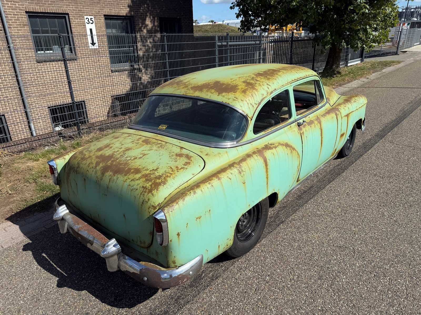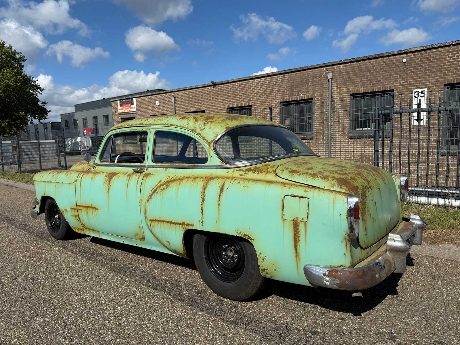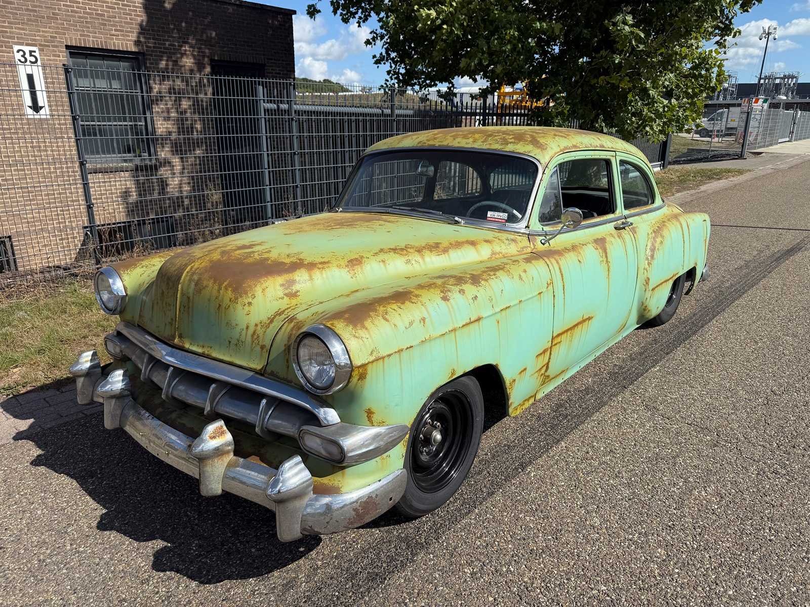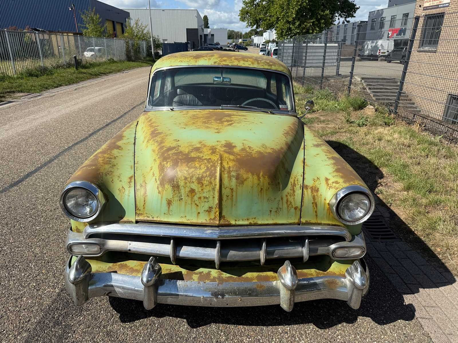 Chevrolet 210 (Belair) 2drs coupé uit 1954 met 350ci 5.7L V8 motor en 3 traps automaat. Mustang 2 onafhankelijk geveerde vooras aangelast tegen het originele chasis met rack and pinion stuurhuis en schijfremmen. Achteras is een 10bolt GM met trommelremmen en is met een 4 link ophanging systeem bevestigd. Airride systeem (luchtvering) op alle 4 de wielen apart instelbaar. Auto is volledig in “patina” stijl gespoten dus alles is nagemaakt met lak! Voorzien van USA papieren, en kan tegen betaling ingevoerd worden. Taxen en invoerrechten zijn reeds volbracht, en komen er niet extra bij. Start/rijd en remt maar dient volledig nagekeken te worden en klaargemaakt. Interieur is van een modernere auto en dient afgewerkt te worden. Usa title en invoer papieren erbij, invoerrechten zijn betaald No Chassisnummer: B54S049776 Merk: Chevrolet Model: 210 Brandstof: benzine Datum eerste toelating: 1954 Nationaliteit documenten: USA Carrosserie: Coupe Aandrijving: Rear Transmissie: Automatic Aantal deuren: 2 Stuurwiel: Left Kleur: Patina Cilinderinhoud: 5700 Aantal cilinders: 8