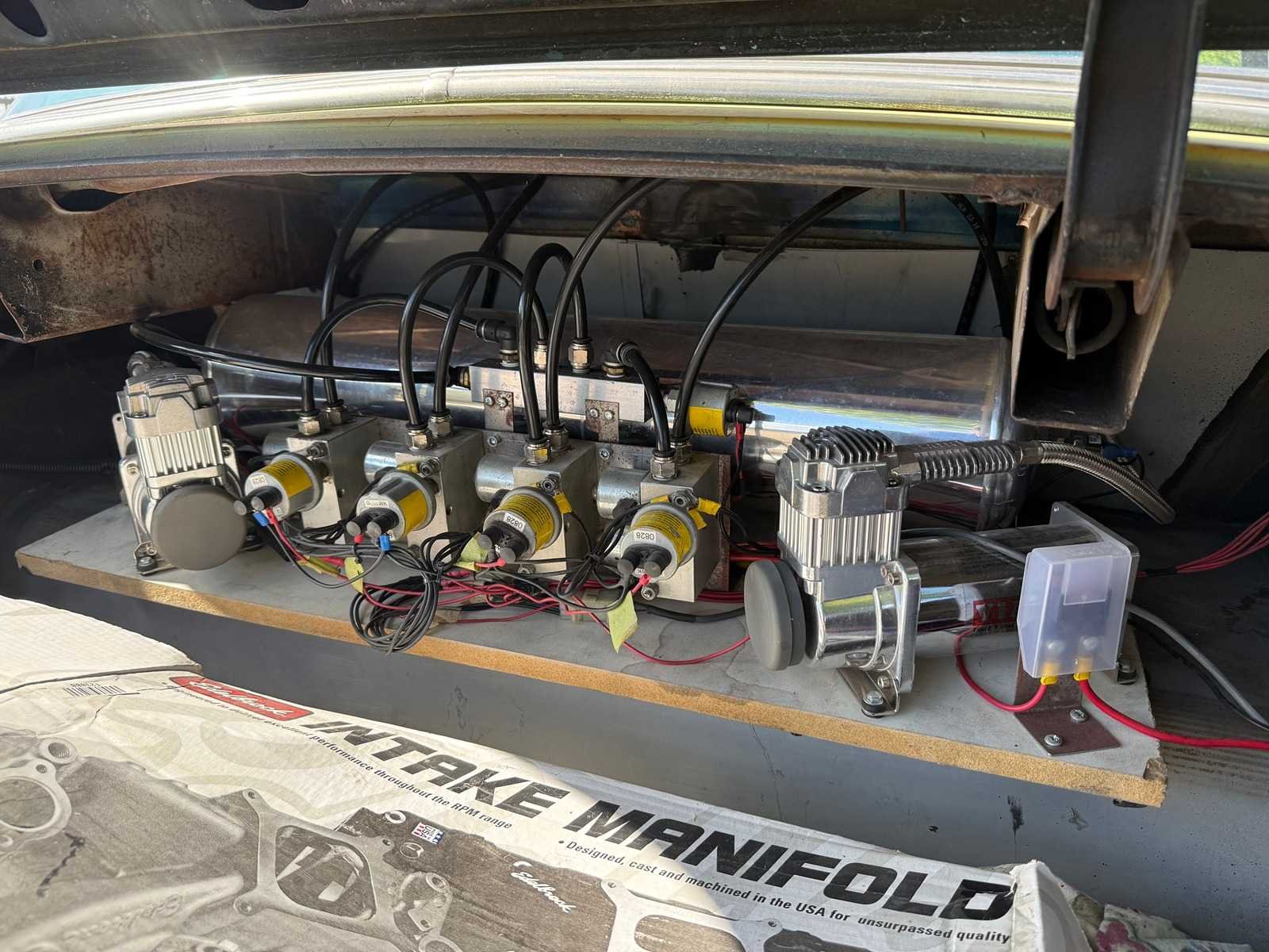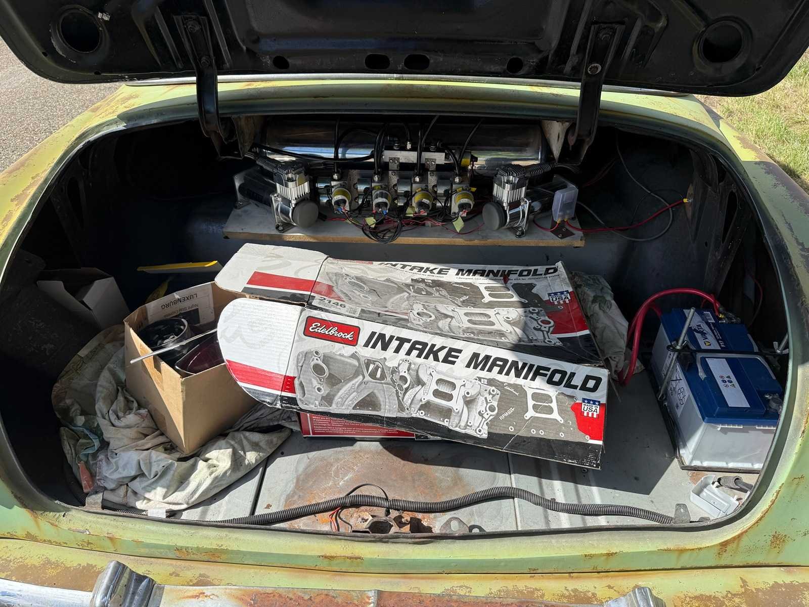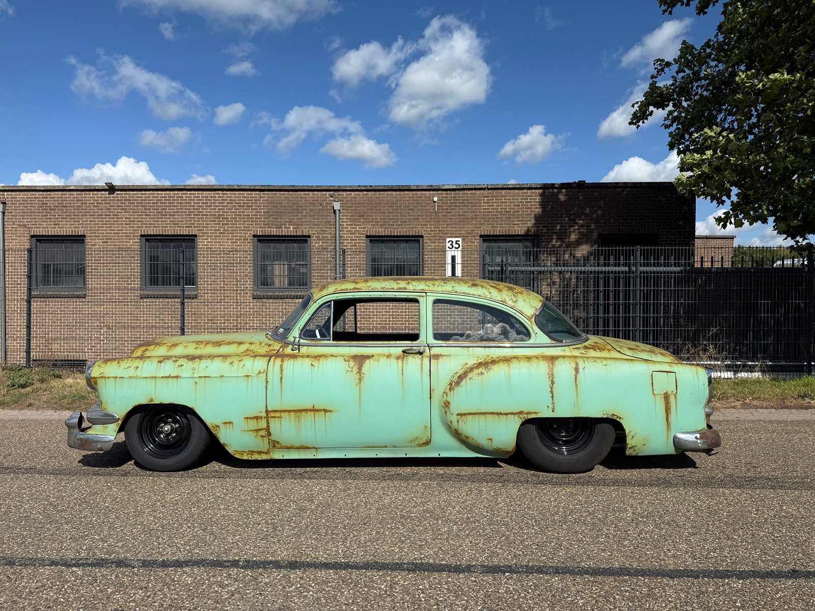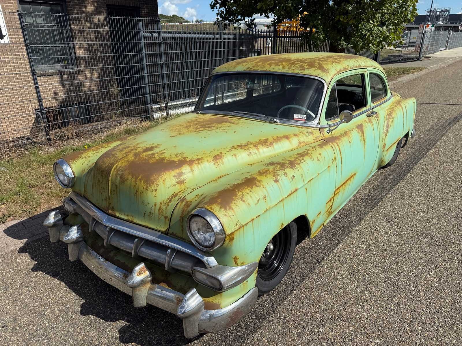 Chevrolet 210 (Belair) 2drs coupé uit 1954 met 350ci 5.7L V8 motor en 3 traps automaat. Mustang 2 onafhankelijk geveerde vooras aangelast tegen het originele chasis met rack and pinion stuurhuis en schijfremmen. Achteras is een 10bolt GM met trommelremmen en is met een 4 link ophanging systeem bevestigd. Airride systeem (luchtvering) op alle 4 de wielen apart instelbaar. Auto is volledig in “patina” stijl gespoten dus alles is nagemaakt met lak! Voorzien van USA papieren, en kan tegen betaling ingevoerd worden. Taxen en invoerrechten zijn reeds volbracht, en komen er niet extra bij. Start/rijd en remt maar dient volledig nagekeken te worden en klaargemaakt. Interieur is van een modernere auto en dient afgewerkt te worden. Usa title en invoer papieren erbij, invoerrechten zijn betaald No Chassisnummer: B54S049776 Merk: Chevrolet Model: 210 Brandstof: benzine Datum eerste toelating: 1954 Nationaliteit documenten: USA Carrosserie: Coupe Aandrijving: Rear Transmissie: Automatic Aantal deuren: 2 Stuurwiel: Left Kleur: Patina Cilinderinhoud: 5700 Aantal cilinders: 8