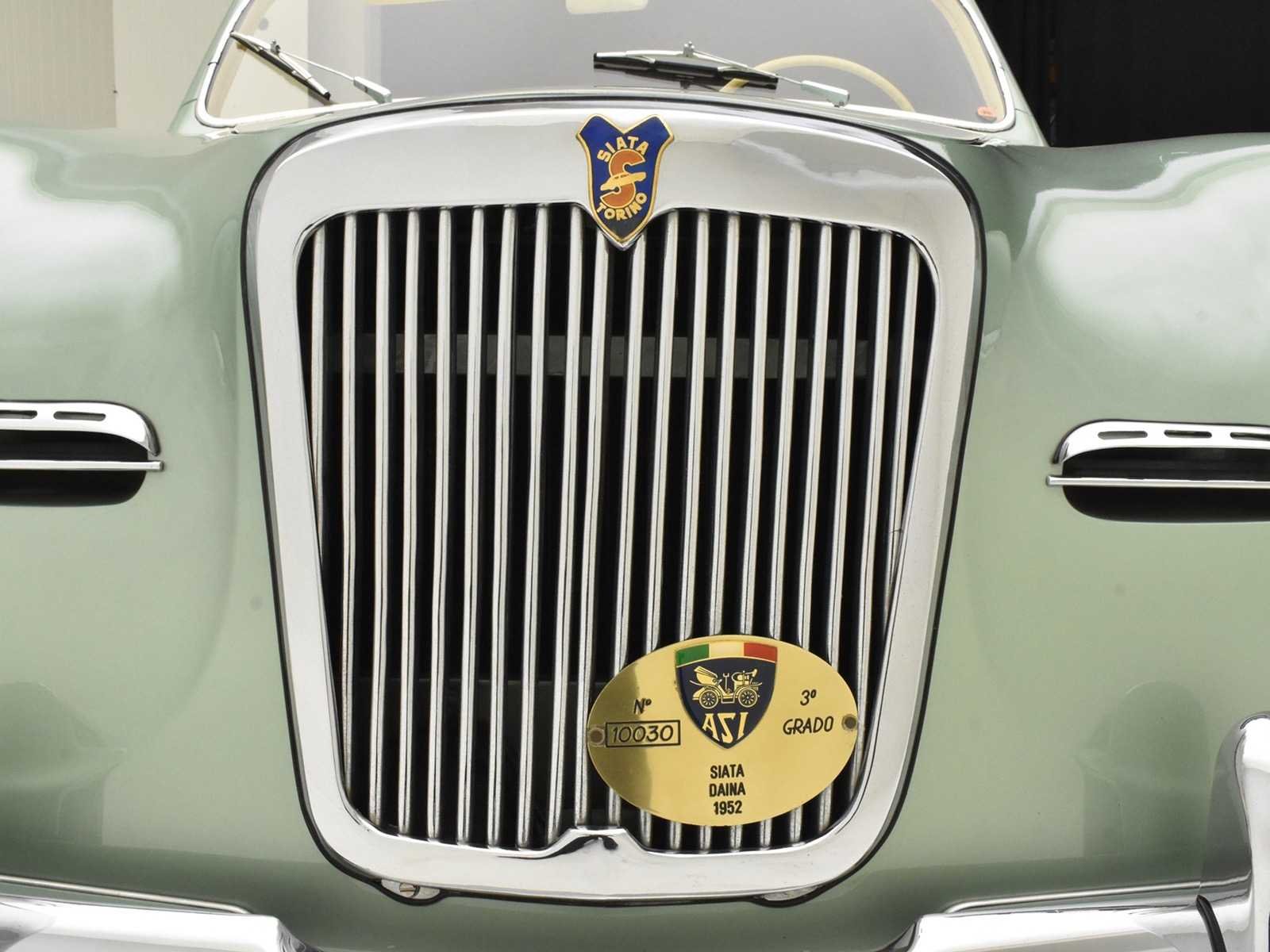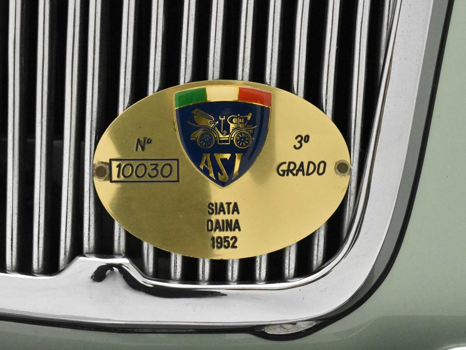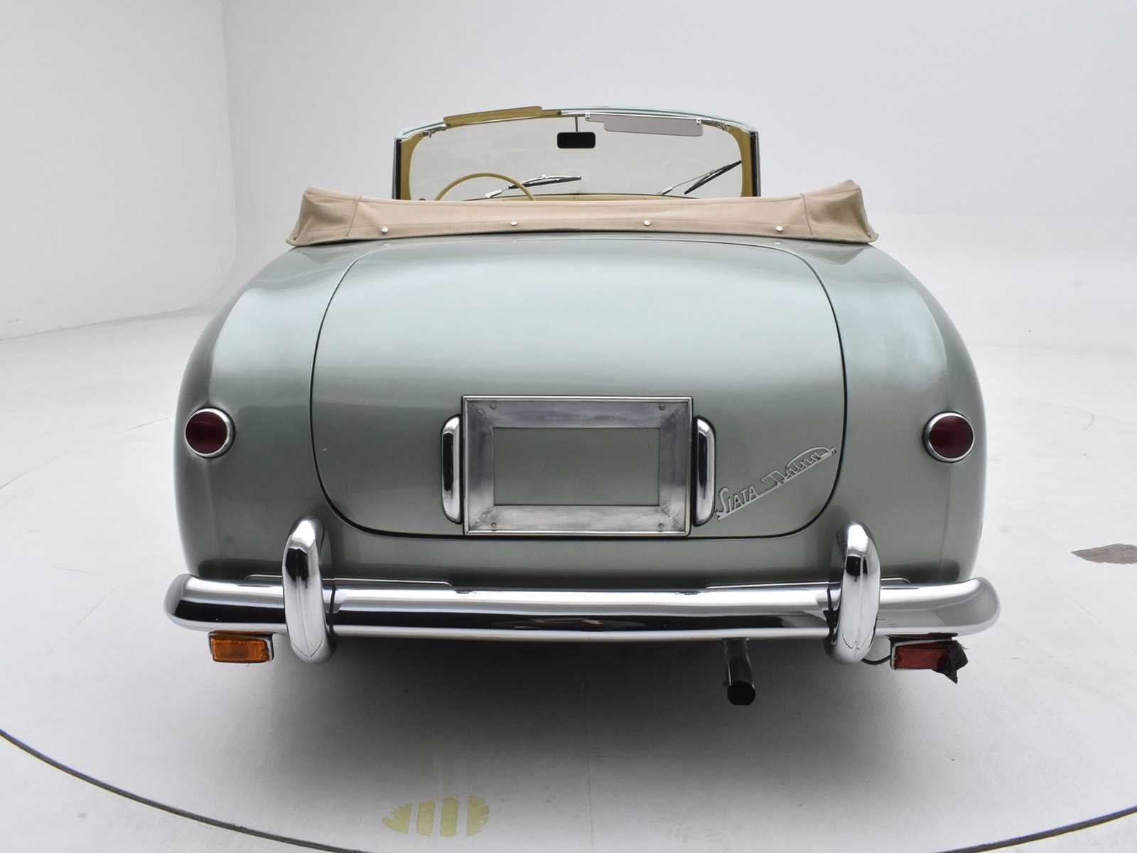 1952 Siata Daina convertible Farina - LHD Chassis SL 0168 aluminum coachwork (except doors). Completely restored in 2005-2006 by a North-Italian specialist. Light fine-metallic green paint. Fiat 4-cylinder 1400 cc engine modified by Siata with special cylinder head, pistons and twin Weber 32 carburetors , 72 BHP. Full aluminum, coachbuilt by Stabilimenti Farina. According to the register, worldwide only 7 examples are still known to survive. Very nicely restored. Obtained very coveted ASI Targa D'Oro & Fiat Heritage awards for the quality and originality of the restoration. Engine benefitted from a total rebuild + general Mille Migla preparation. Founded in 1926 in Turin, Italy by Giorgio Ambrosini, Siata (Societa Italiana Auto Trasformazioni Accessori) began life as a tuning firm specializing in the modification of FIATs. When the company, now renamed Siata Auto Spa, eventually introduced its first production car in 1949, Fiat components were the logical choice for the new Amica cabriolet. During the 1950s and on into the '60s a variety of US engines including Crosley, Ford and Chrysler V8s was adopted in addition to Fiat's home-grown motors. Siata's Daina model of the early 1950s was based on the Fiat 1400 and built in both Cabriolet and Coupé forms, most of the former being bodied by Stabilimenti Farina and the latter by Bertone. Later cars were designated 'SL' (Scatolato Lamiera – literally: sheet metal box). The Daina used the FIAT 1400 overhead-valve engine, modified by Siata with a special cylinder head, pistons and twin-carburetor inlet manifold. This 1952 Siata Daina with chassis SL 0168 and with aluminum coachwork (except doors) by Stabilimenti Farina, was completely restored in 2005-2006 by a North-Italian specialist respecting rigorously the original specifications and colors in which this particular Trasformabile left the Siata factory. No Merk: SIATA DIANA Bouwjaar: 1952 Chassisnummer: SL0168 Afgelezen kilometerstand: 03825 Brandstof: Benzine Datum eerste inschrijving: 01/01/1952 Datum eerste toelating: 01/01/1952 Boorddocumenten aanwezig?: true Nationaliteit documenten: Belgisch Kentekenpapieren compleet?: true Carrosserie: Cabriolet Aandrijving: Achter Transmissie: Manueel Vermogen (pk): 72 Aantal deuren: 2 Aantal sleutels: 1 Startinformatie: Start en rijdt Kleur: groen Cilinderinhoud: 1400 Aantal cilinders: 4 Inschrijvingsbewijs - deel 1 : Aanwezig Inschrijvingsbewijs - deel 2: Aanwezig