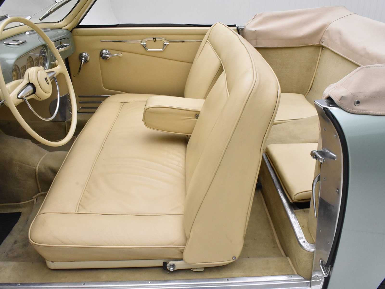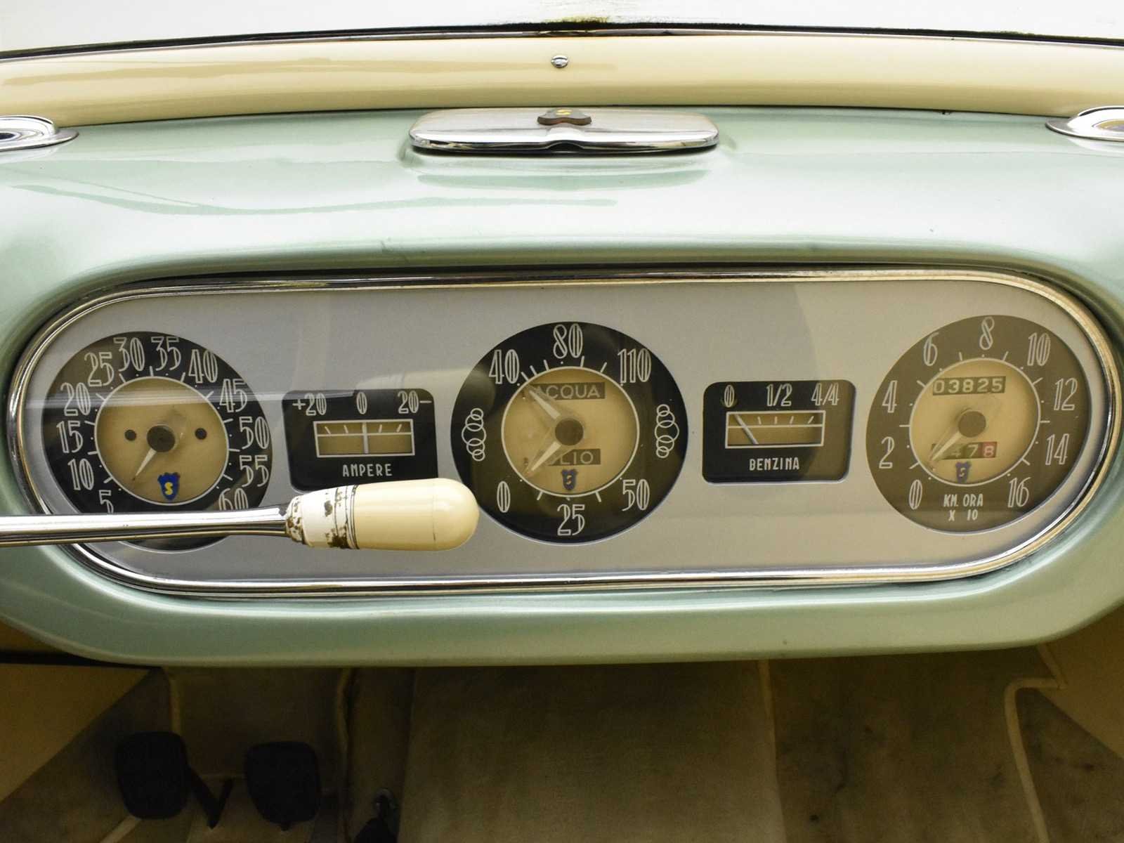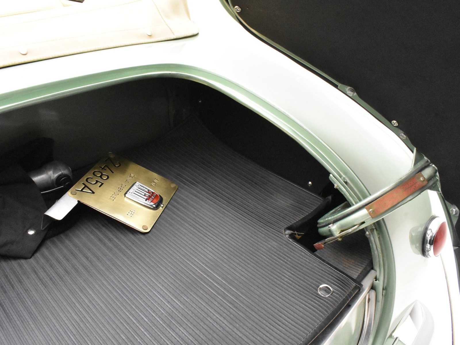 1952 Siata Daina convertible Farina - LHD Chassis SL 0168 aluminum coachwork (except doors). Completely restored in 2005-2006 by a North-Italian specialist. Light fine-metallic green paint. Fiat 4-cylinder 1400 cc engine modified by Siata with special cylinder head, pistons and twin Weber 32 carburetors , 72 BHP. Full aluminum, coachbuilt by Stabilimenti Farina. According to the register, worldwide only 7 examples are still known to survive. Very nicely restored. Obtained very coveted ASI Targa D'Oro & Fiat Heritage awards for the quality and originality of the restoration. Engine benefitted from a total rebuild + general Mille Migla preparation. Founded in 1926 in Turin, Italy by Giorgio Ambrosini, Siata (Societa Italiana Auto Trasformazioni Accessori) began life as a tuning firm specializing in the modification of FIATs. When the company, now renamed Siata Auto Spa, eventually introduced its first production car in 1949, Fiat components were the logical choice for the new Amica cabriolet. During the 1950s and on into the '60s a variety of US engines including Crosley, Ford and Chrysler V8s was adopted in addition to Fiat's home-grown motors. Siata's Daina model of the early 1950s was based on the Fiat 1400 and built in both Cabriolet and Coupé forms, most of the former being bodied by Stabilimenti Farina and the latter by Bertone. Later cars were designated 'SL' (Scatolato Lamiera – literally: sheet metal box). The Daina used the FIAT 1400 overhead-valve engine, modified by Siata with a special cylinder head, pistons and twin-carburetor inlet manifold. This 1952 Siata Daina with chassis SL 0168 and with aluminum coachwork (except doors) by Stabilimenti Farina, was completely restored in 2005-2006 by a North-Italian specialist respecting rigorously the original specifications and colors in which this particular Trasformabile left the Siata factory. No Merk: SIATA DIANA Bouwjaar: 1952 Chassisnummer: SL0168 Afgelezen kilometerstand: 03825 Brandstof: Benzine Datum eerste inschrijving: 01/01/1952 Datum eerste toelating: 01/01/1952 Boorddocumenten aanwezig?: true Nationaliteit documenten: Belgisch Kentekenpapieren compleet?: true Carrosserie: Cabriolet Aandrijving: Achter Transmissie: Manueel Vermogen (pk): 72 Aantal deuren: 2 Aantal sleutels: 1 Startinformatie: Start en rijdt Kleur: groen Cilinderinhoud: 1400 Aantal cilinders: 4 Inschrijvingsbewijs - deel 1 : Aanwezig Inschrijvingsbewijs - deel 2: Aanwezig